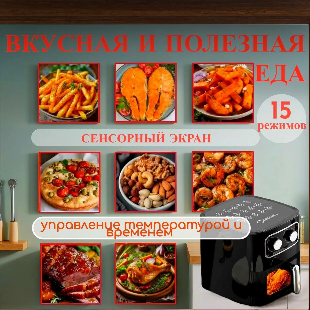 Аэрогриль электрический с антипригарным покрытием 6л/1400Вт/8 автоматических программ