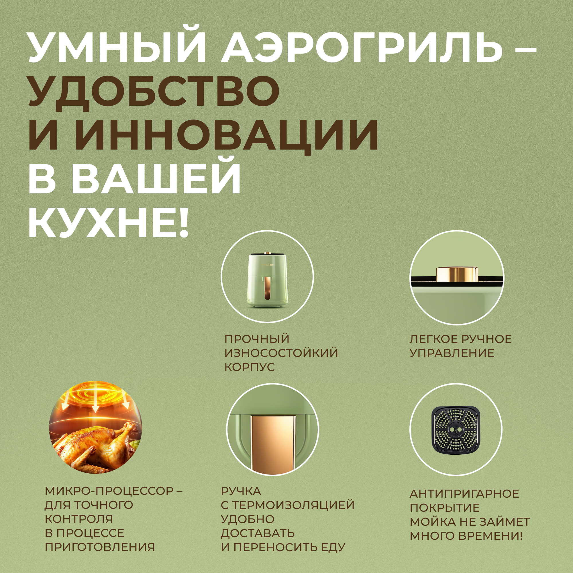 Аэрогриль Xianke 6 л, 1050 Вт, механическое управление, таймер, зеленый интересное: