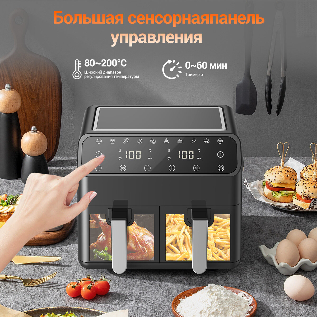 Аэрогриль фритюрница KaringBee Air Fryer 8L , черный,100 вкладышей в подарок интересное: