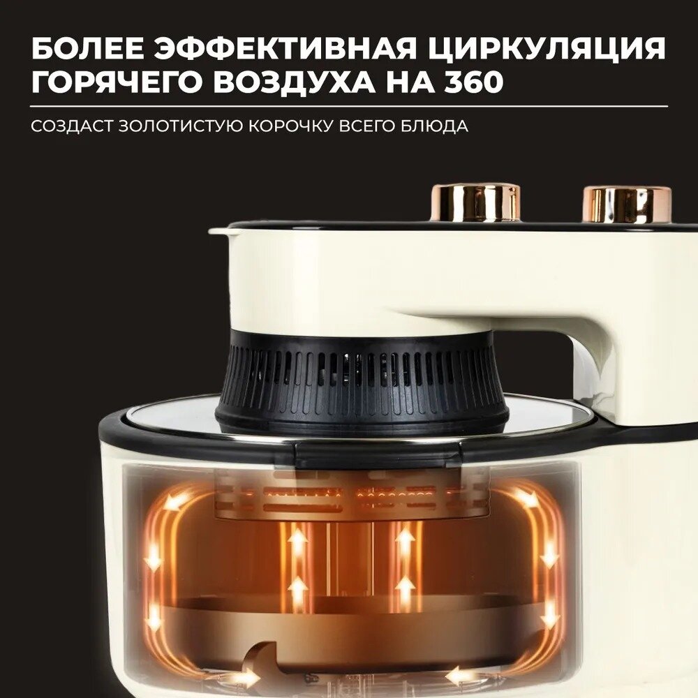 Аэрогриль, Аэрофритюрница электрическая, 8 программ приготовления, объем 4 л, Мультипечь для кухни 1500 Вт, белая интересное: