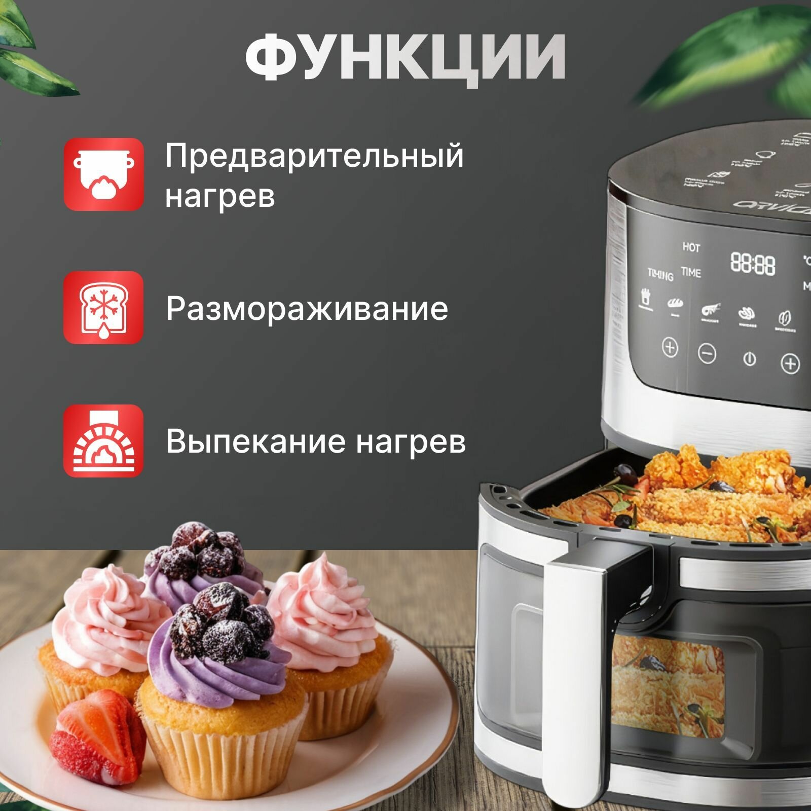 Аэрогриль электрический 7 литров, 2400 Вт, черно/серебристый, Сенсорный интересное: