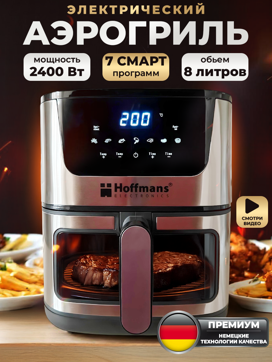 Аэрогриль HOFFMANS, 2400Вт, 8л, аэрофритюрница, электронное управление, чёрный/серый интересное: