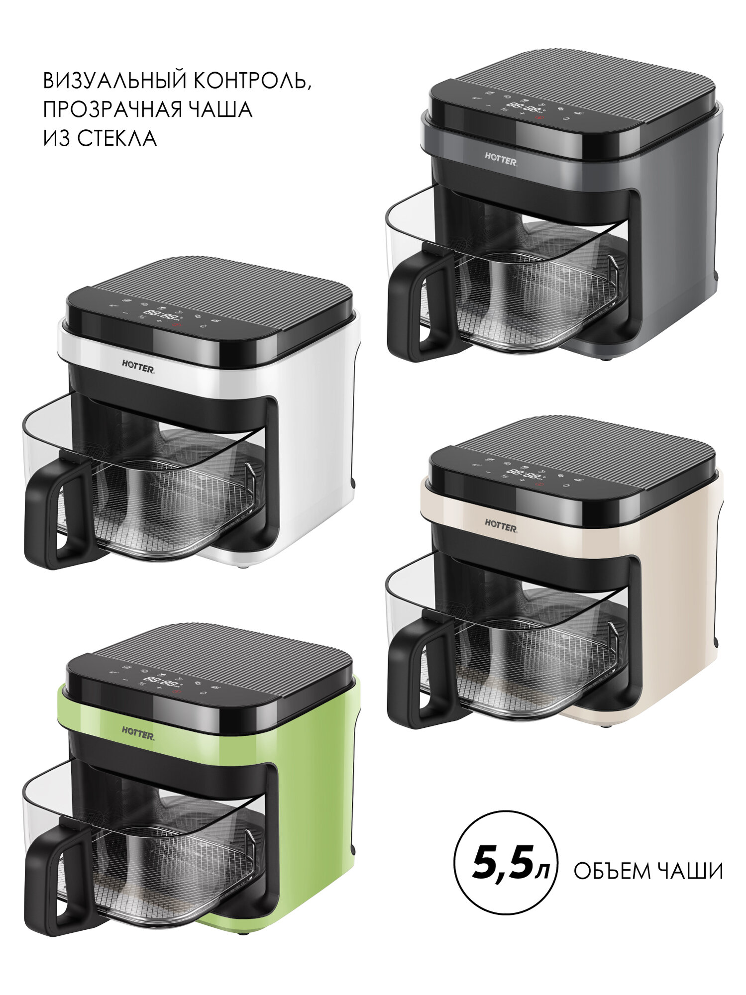 Аэрогриль HOTTER HX-533, стеклянная чаша 5,5 литров, 7 автопрограмм, регулировка времени и температуры, зеленый/черный интересное: