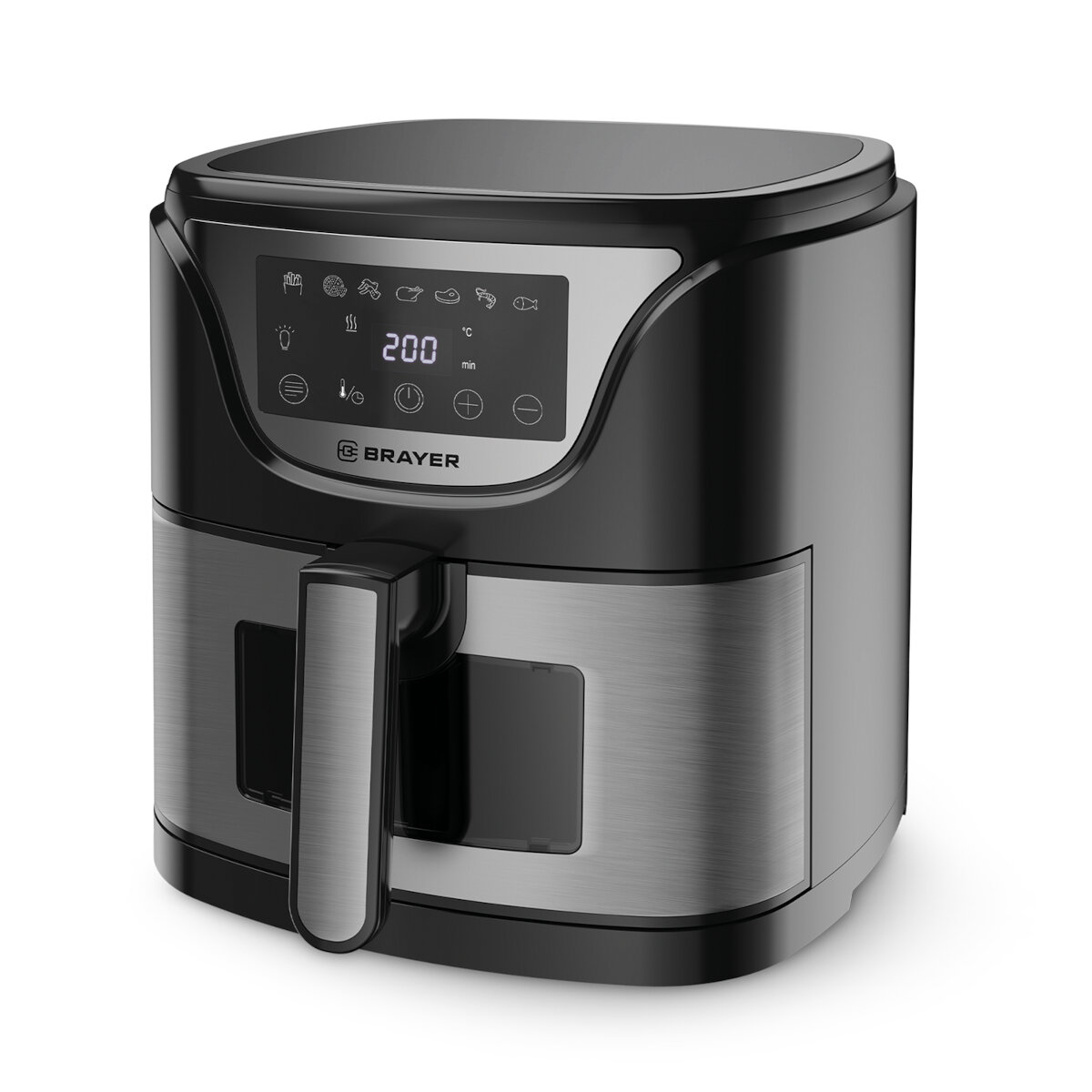 Купить Аэрогриль BRAYER BR2037, 1500Вт, объем чаши 5л, LCD-дисплей, серебристый, черный