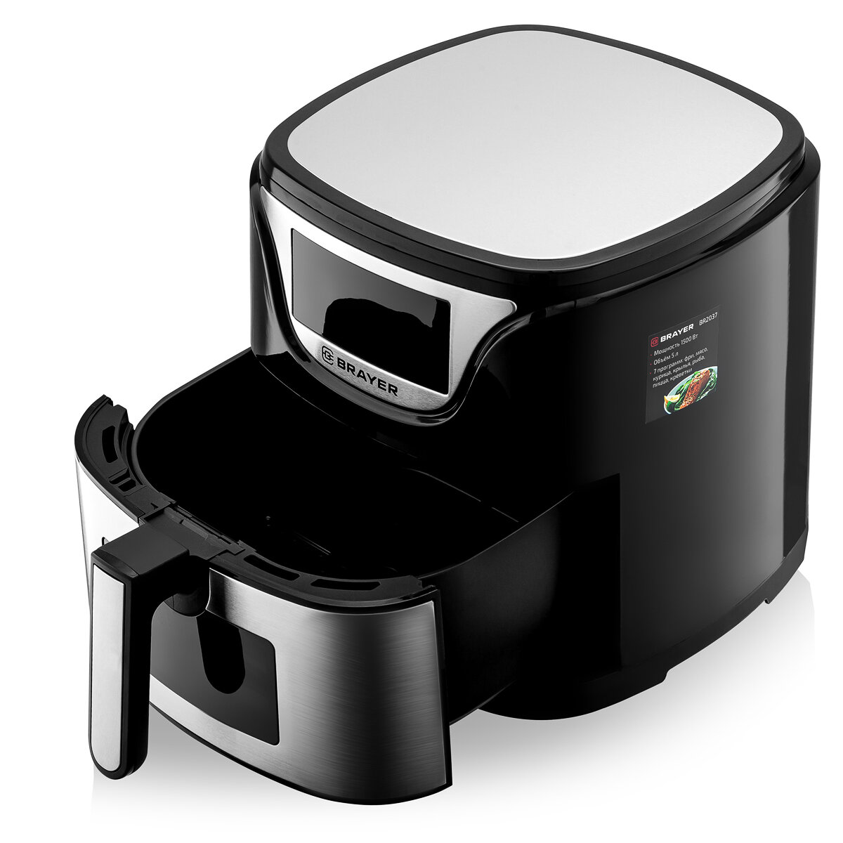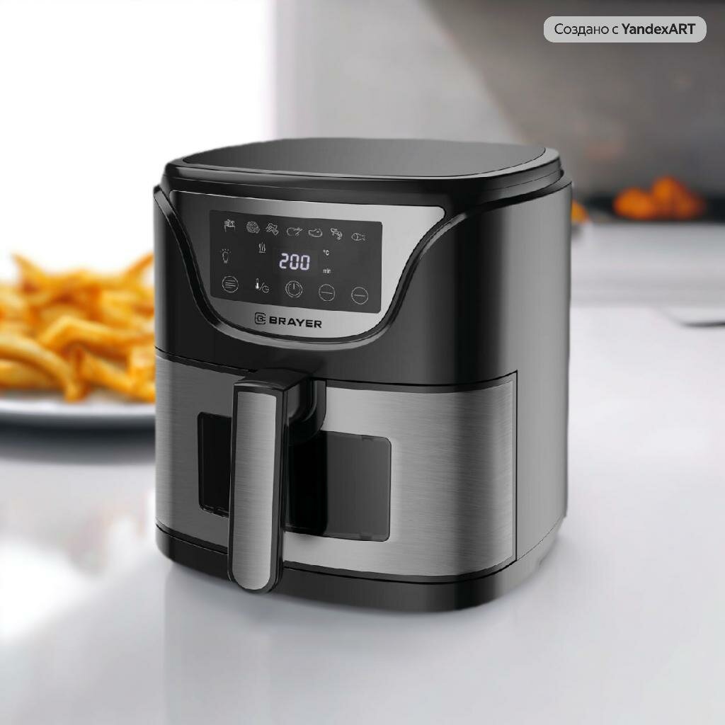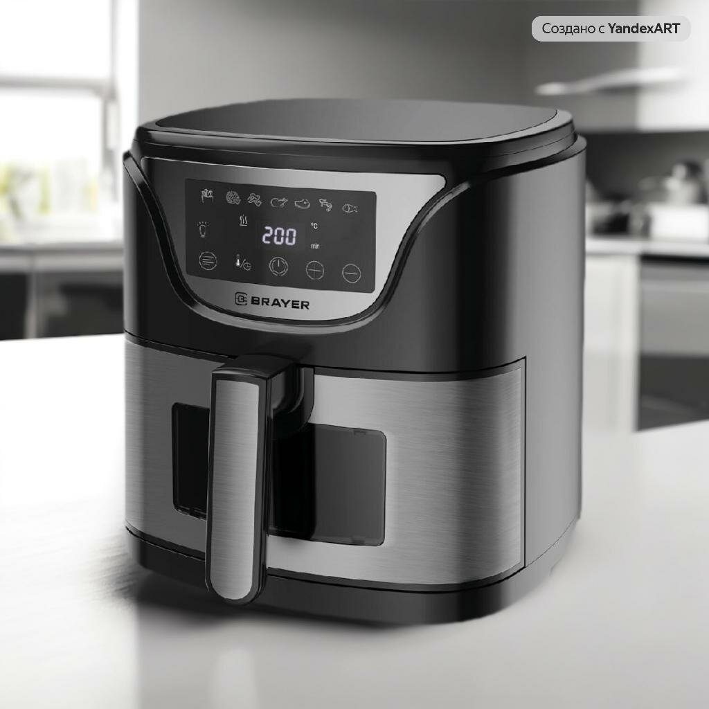 Аэрогриль BRAYER BR2037, 1500Вт, объем чаши 5л, LCD-дисплей, серебристый, черный интересное: