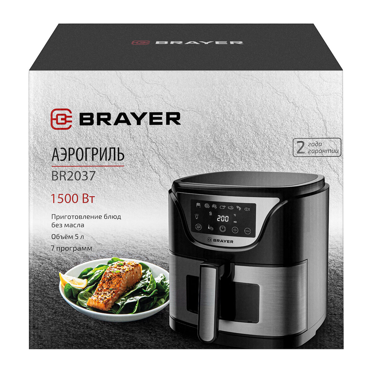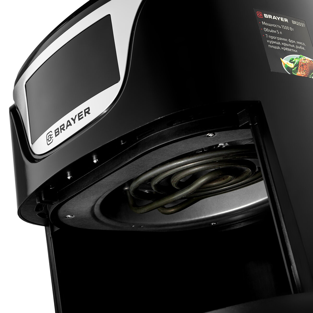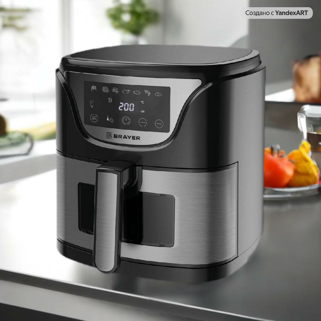 Аэрогриль BRAYER BR2037, 1500Вт, объем чаши 5л, LCD-дисплей, серебристый, черный интересное: