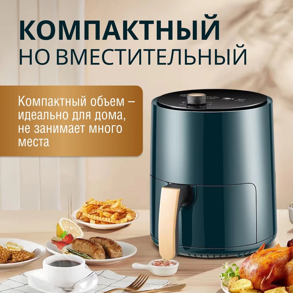 Аэрогриль электрический Camel Air Fryer, 4 л, 1200 Вт, механическое управление, антипригарное покрытие, зеленый интересное: