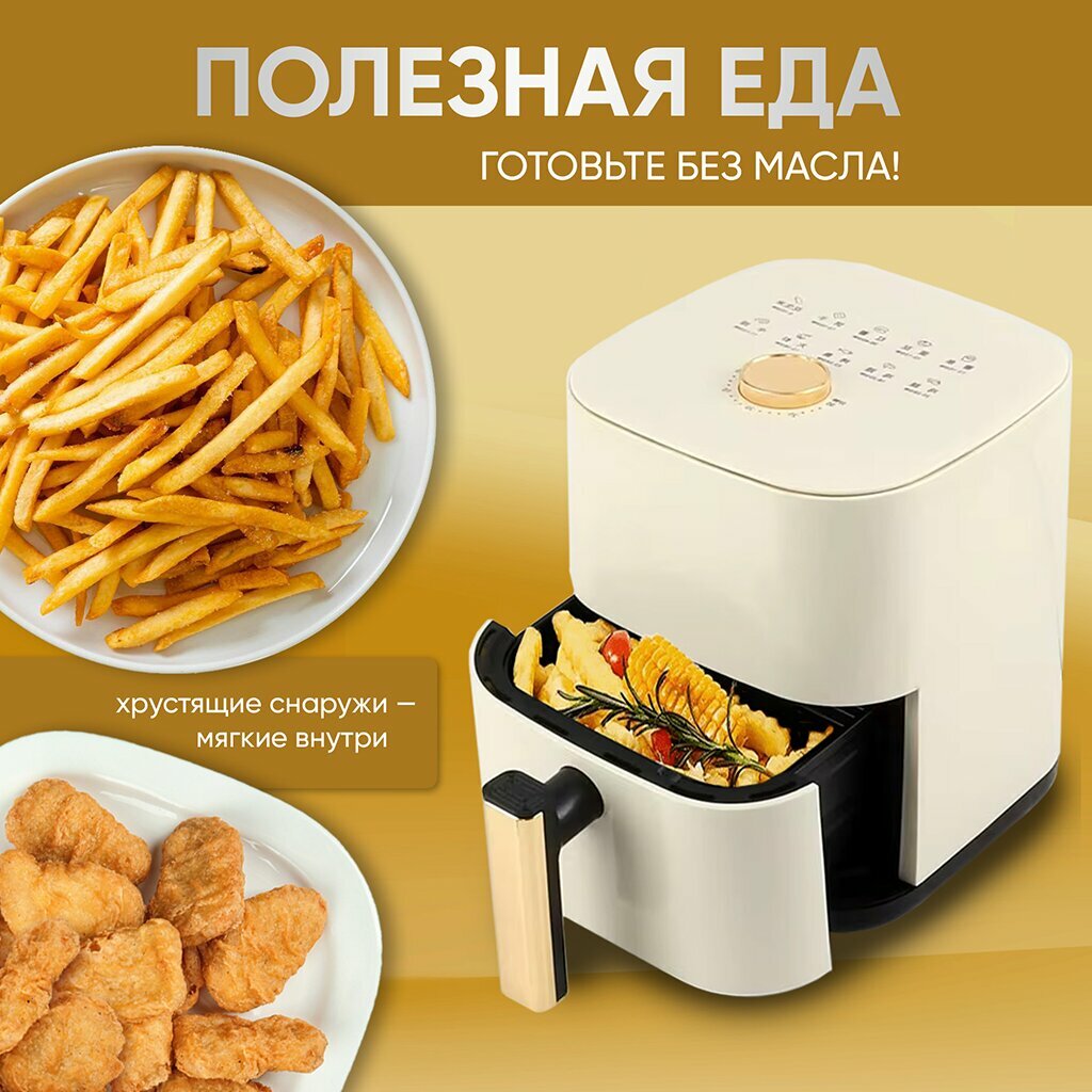 Аэрогриль Camel Air Fryer 6 л, 1200 Вт, механическое управление, 3D-нагрев, белый
