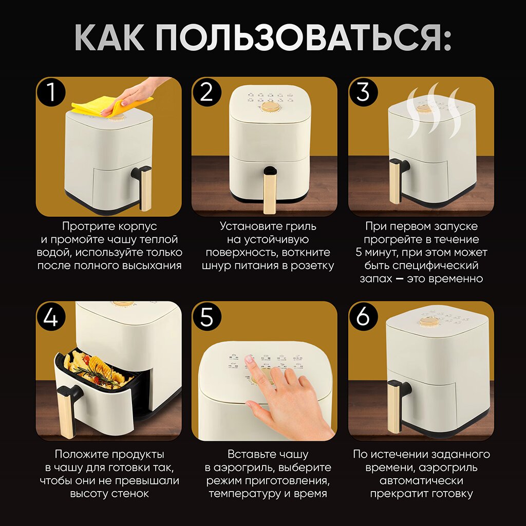 Электрический аэрогриль Camel Air Fryer с мощностью 900 Вт и объемом 6 литров интересное: