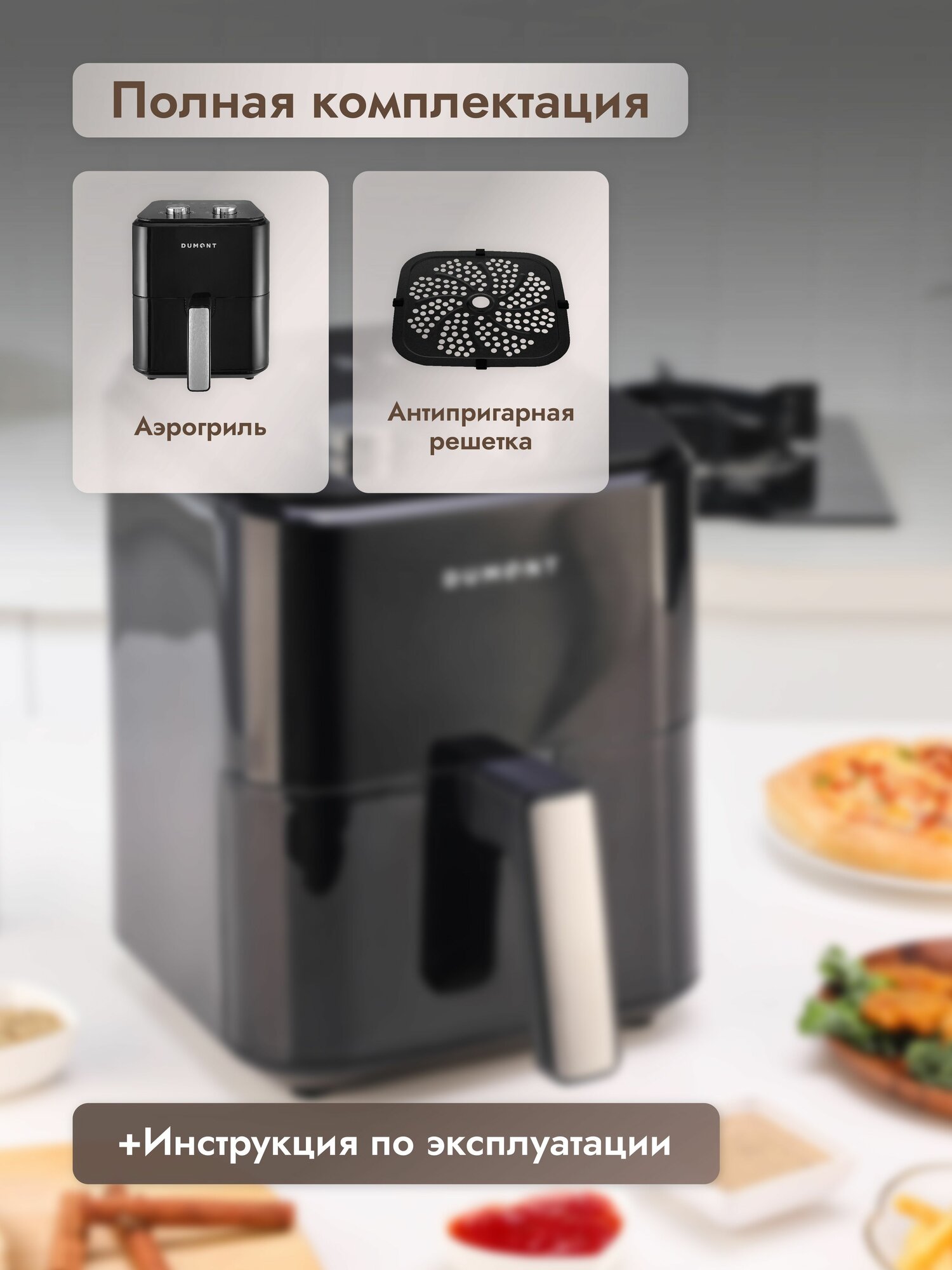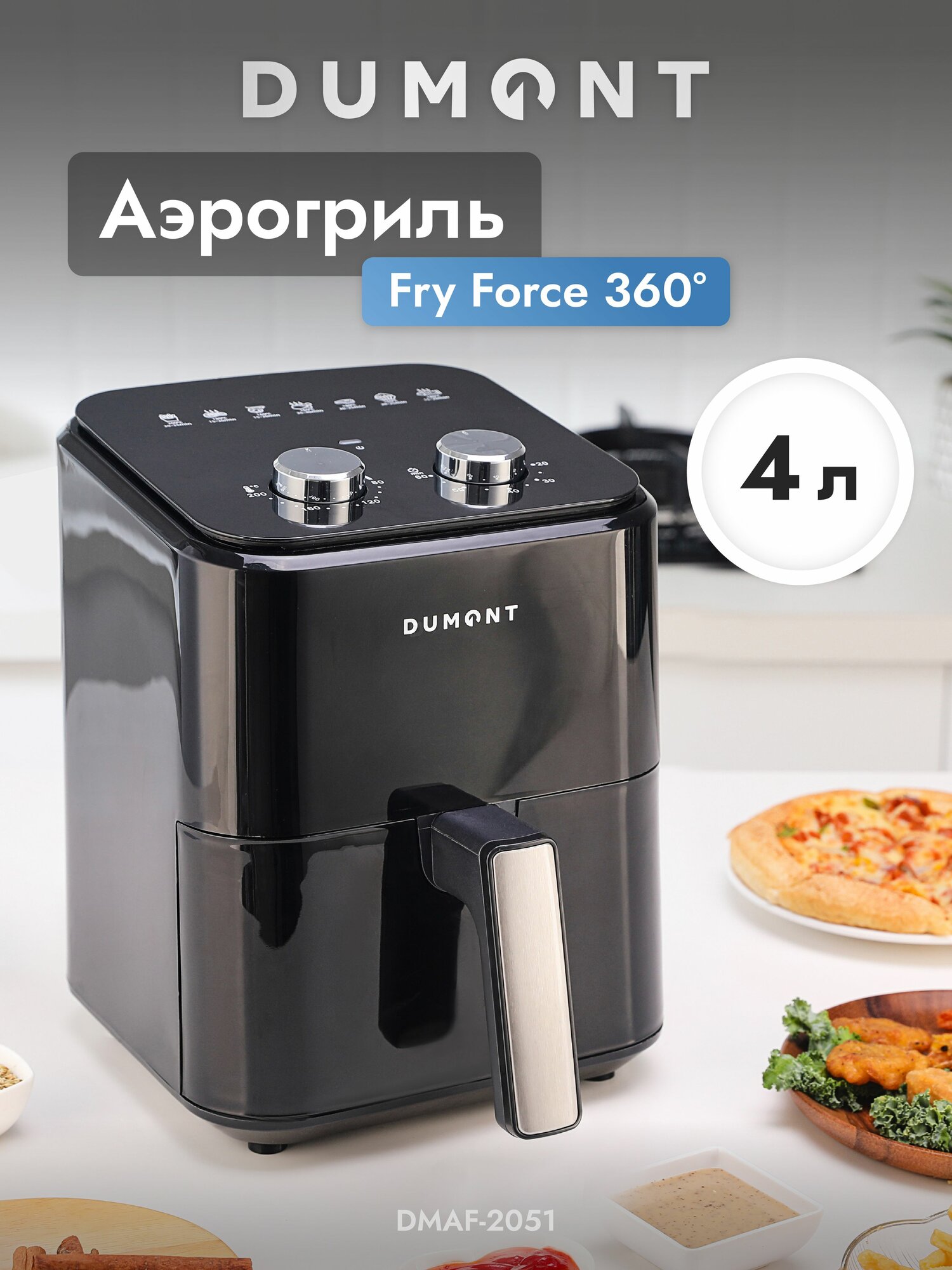 Аэрогриль электрический Dumont DMAF-2051 4 л (Технология Fry Force 360) интересное: