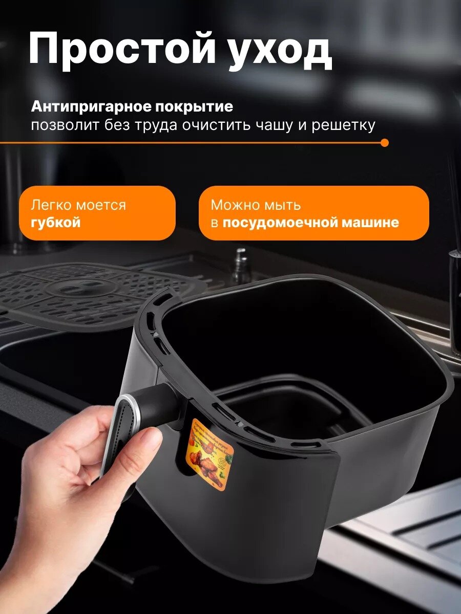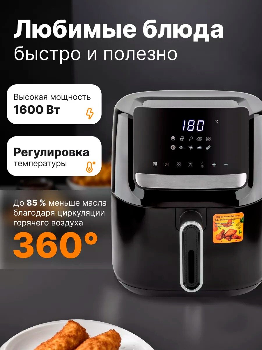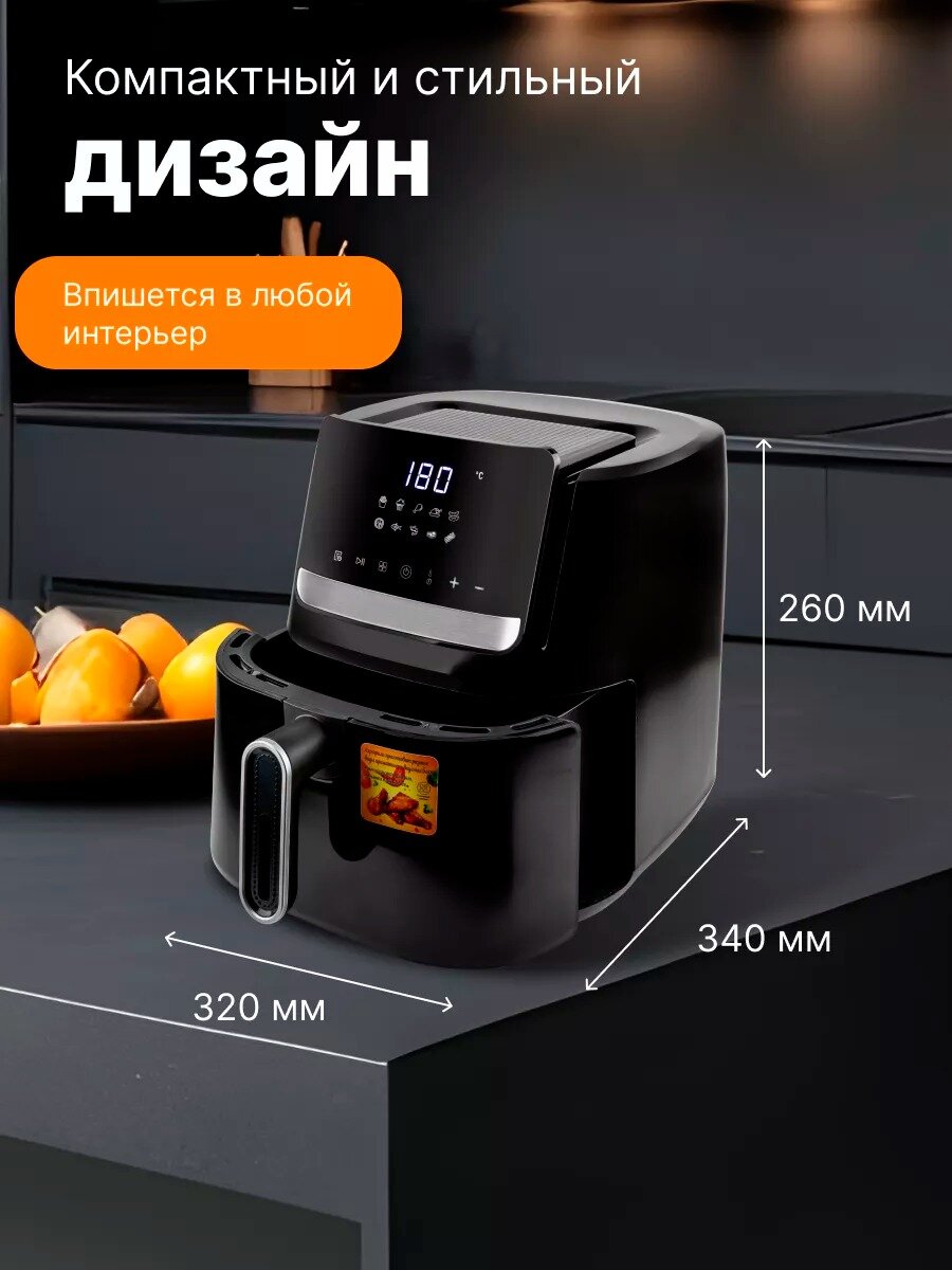 Аэрогриль электрический/Аэрофритюрница электрическая/объем 7.5 л /6 автоматических программ/для кухни 1600 Вт/черный интересное: