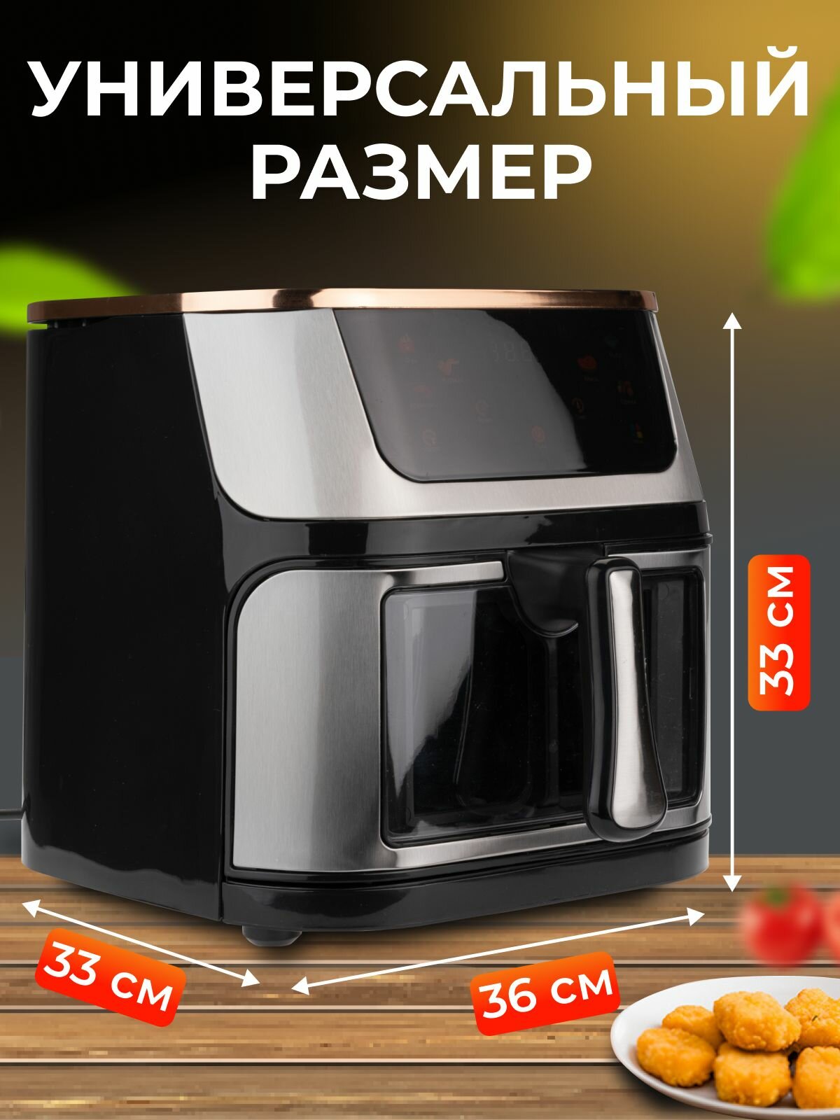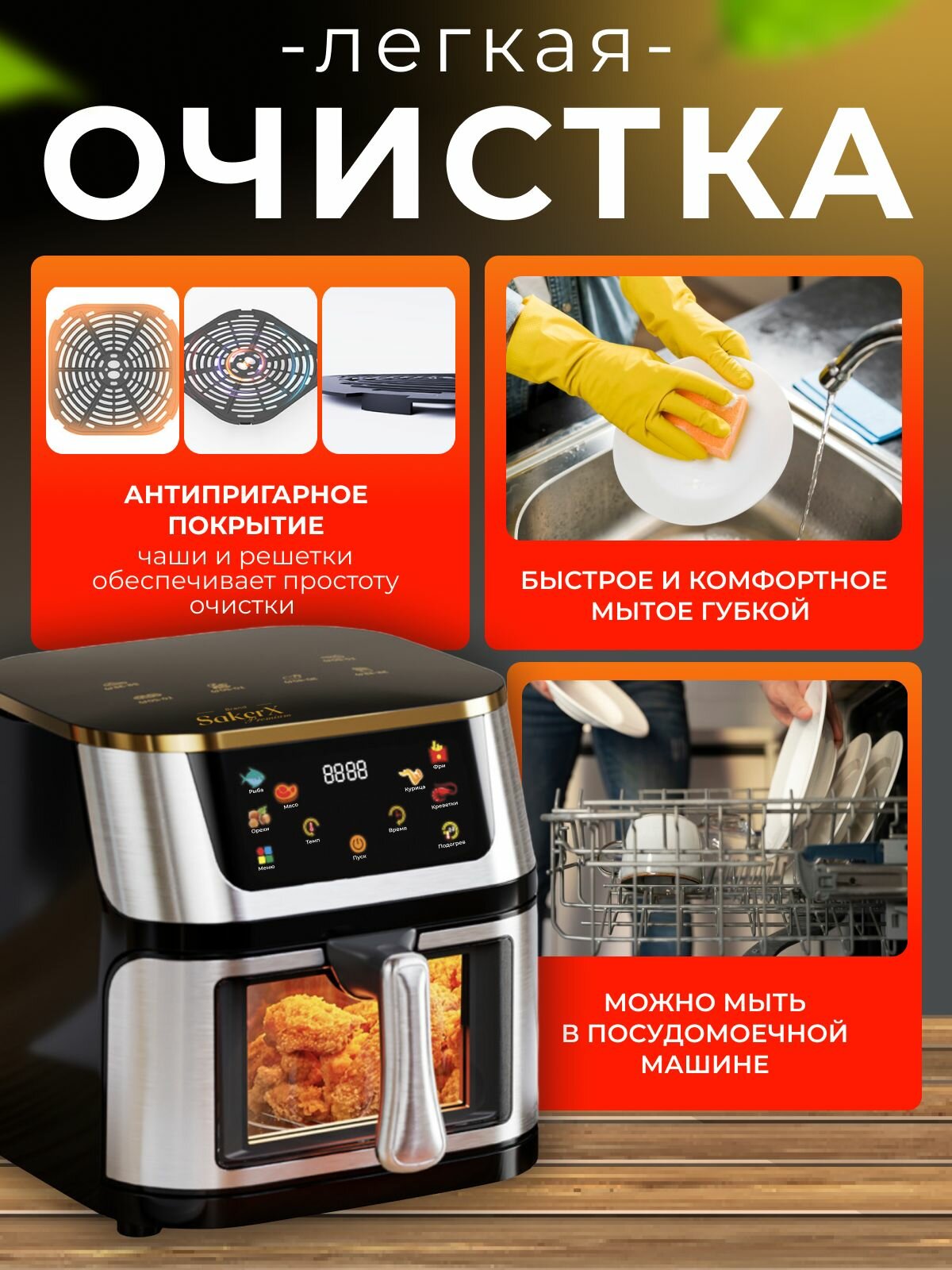 Аэрогриль электрический для кухни, дома 10 литров, 1400 ВТ, SakerX Premium, со стеклянной чашей, аэрофритюрница интересное: