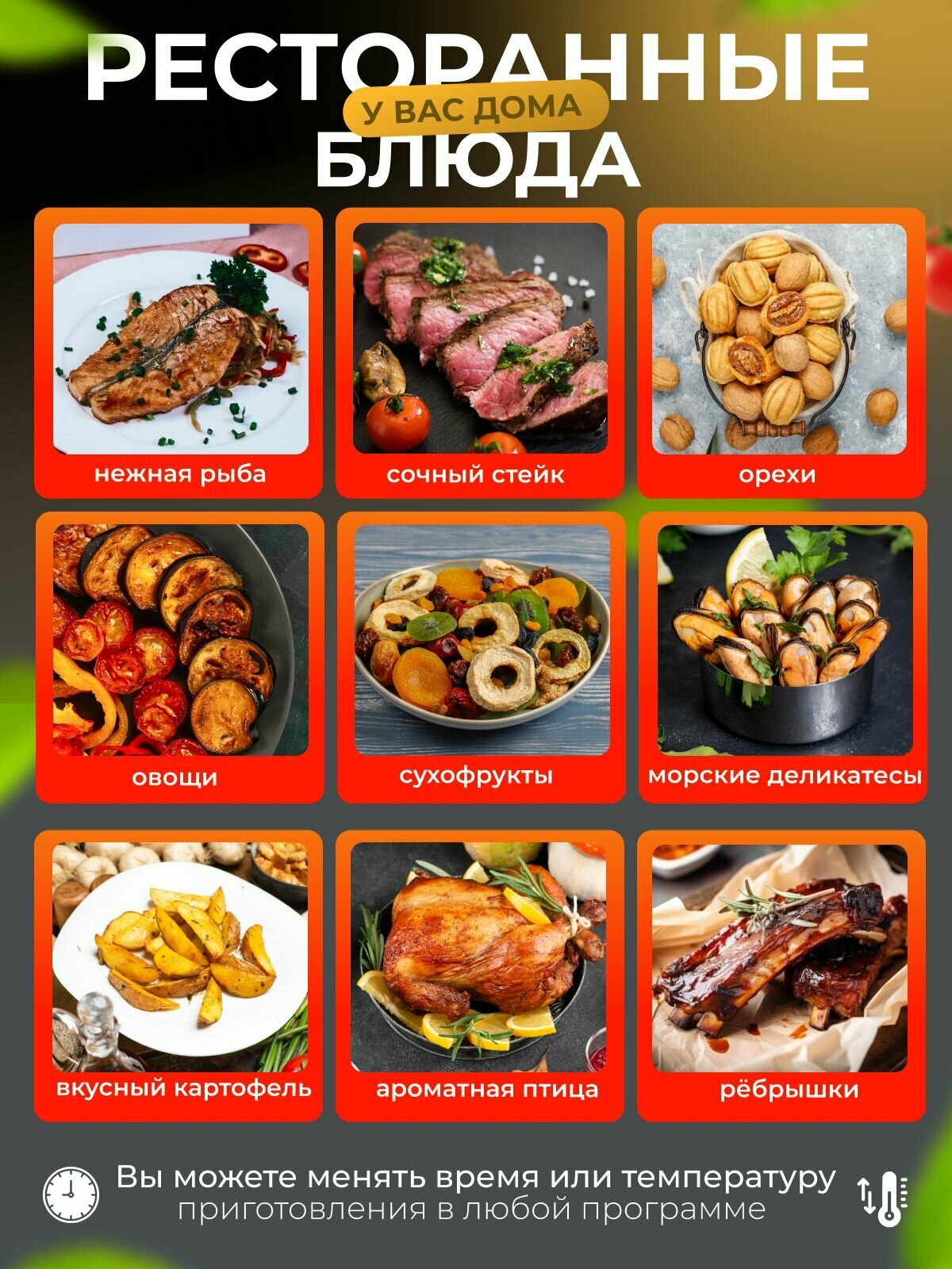 | Управление аэрогрилем | Таймер, Установка температуры |