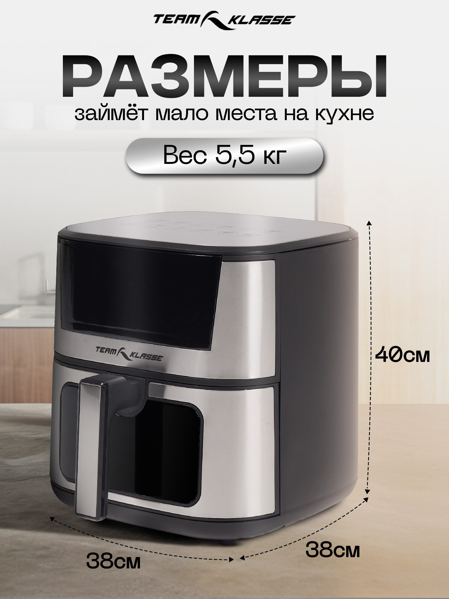 Аэрогриль Team Klasse 802T аэрофритюрница, решетка, 1700 Вт и 8 программ, объем 8 л, приготовление без масла до 200 градусов, с антипригарным покрытием, таймер, цвет черный
