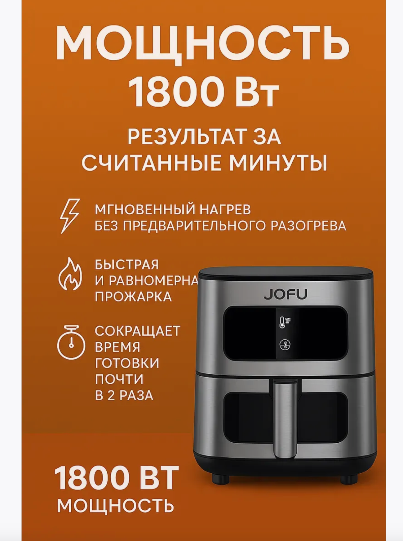 Аэрогриль Haley JOFU, серебристый, электронное управление, 1800Вт, 8 программ, 13,5 л интересное: