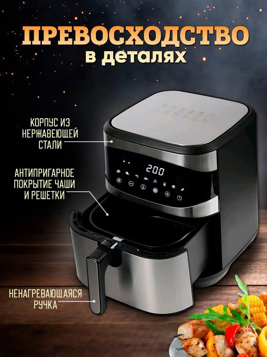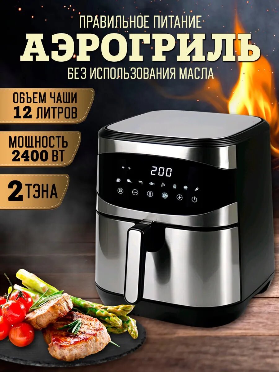 Аэрогриль электрический 12 литров с двумя ТЭНами для дома и дачи 12 программ 2400вт интересное: