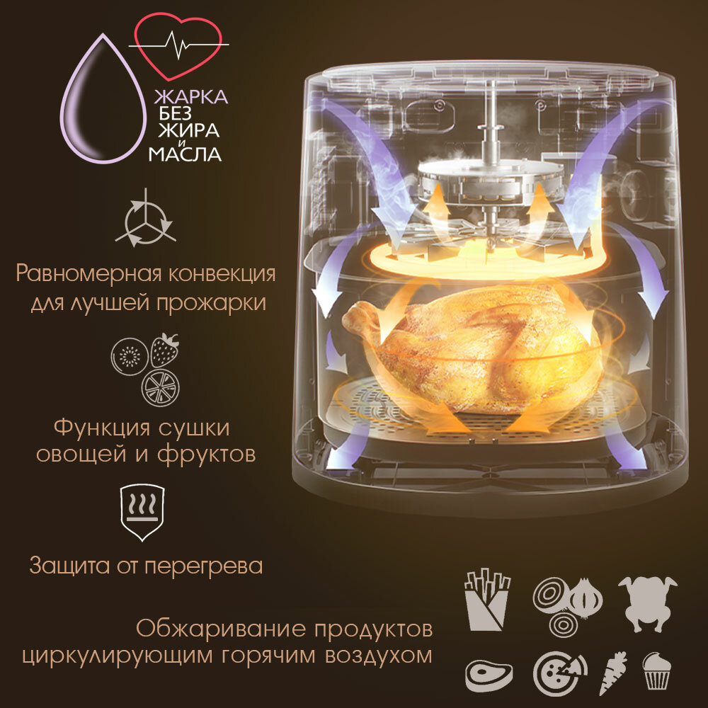| Управление аэрогрилем | Таймер, Установка температуры |