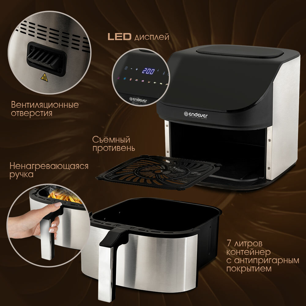 Купить Аэрогриль электрический ENDEVER AF-129 / 1800 Вт/ 7л / 10 автоматических программ / LED дисплей, таймер