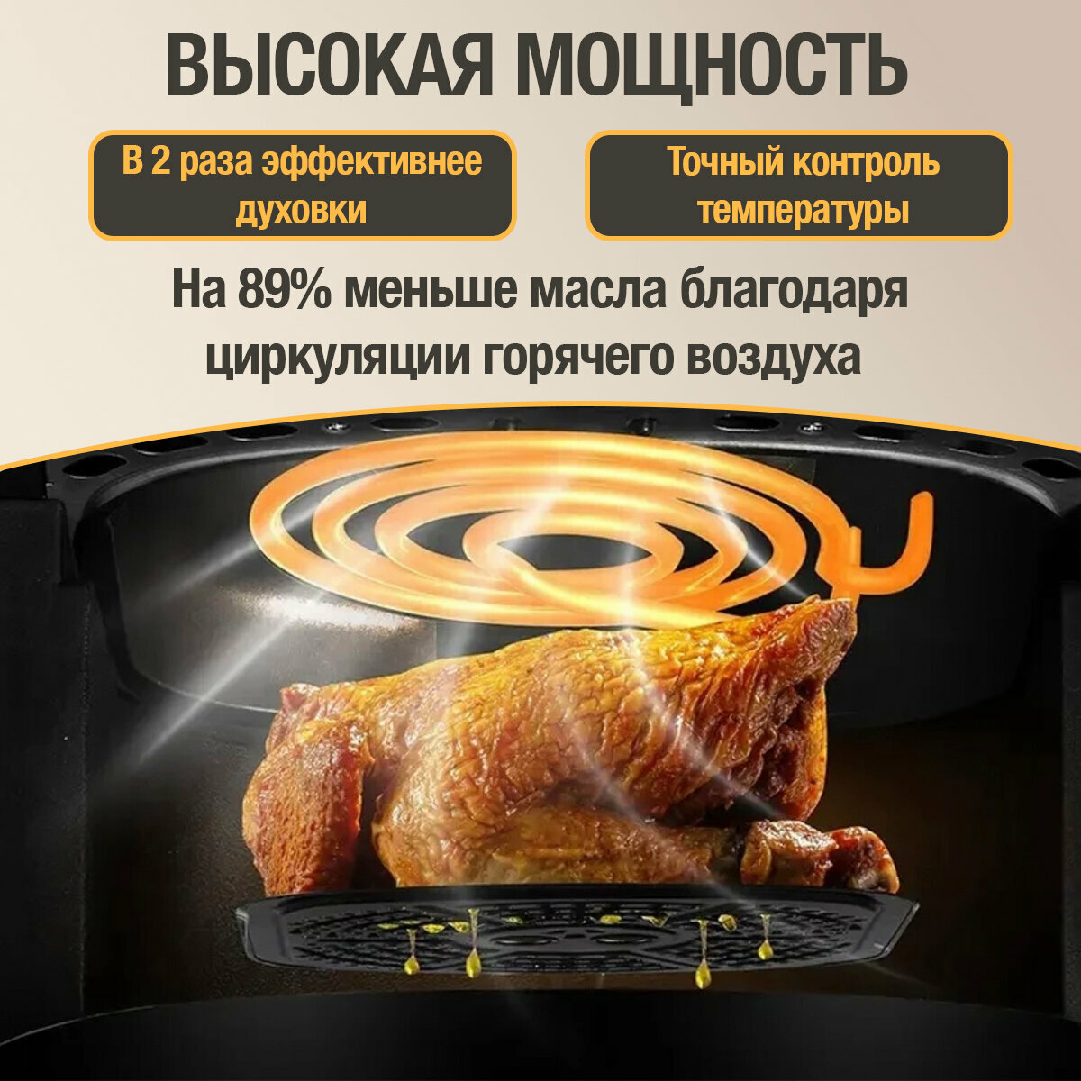 Аэрогриль электрический для дома, аэрофритюрница, сенсорный, настольный, объем 6 литров, мощность 1350 Вт, черный интересное:
