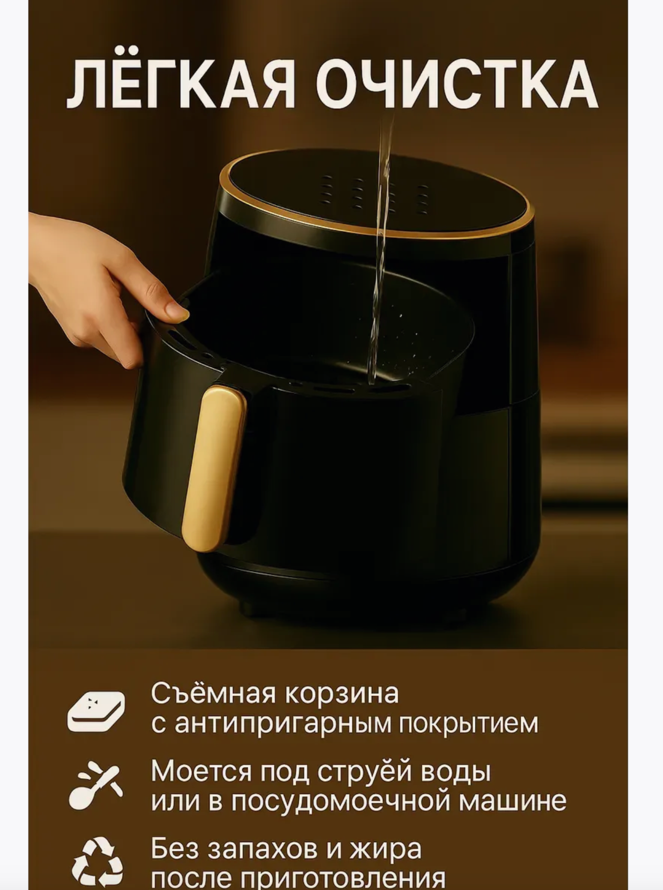 Аэрогриль Haley HY-2503, 2000 Ватт, сенсорное управление, черный интересное: