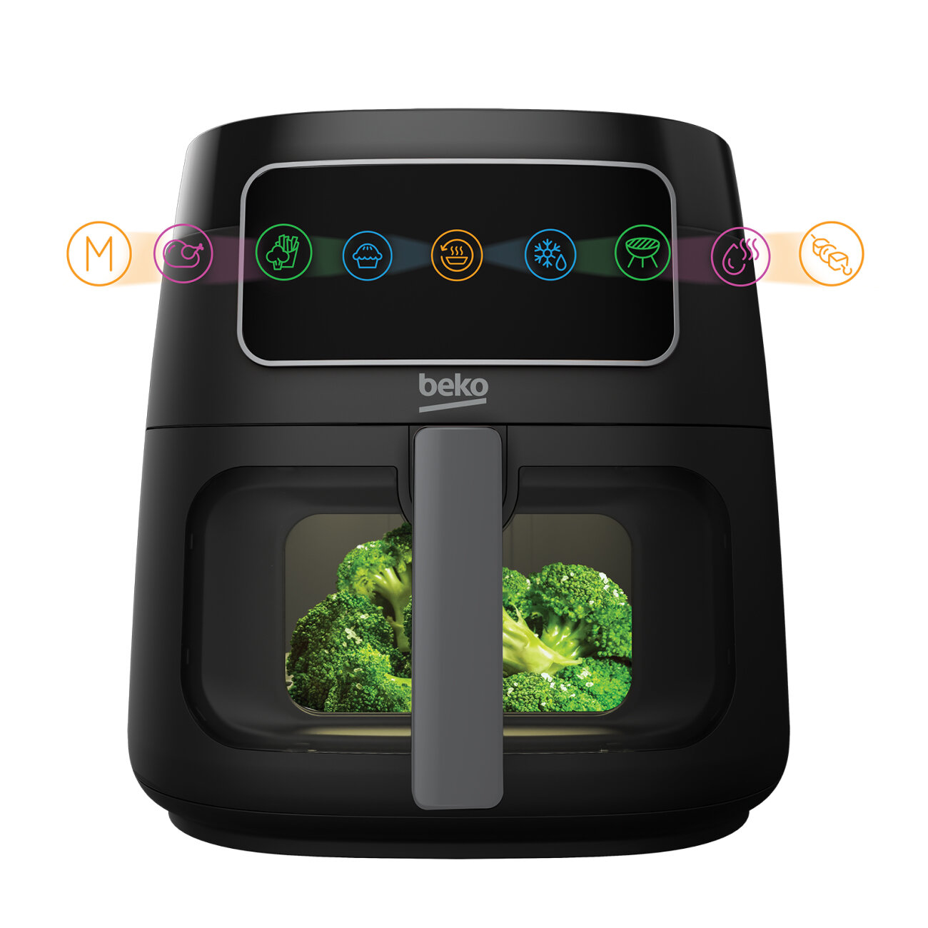 Купить Аэрогриль BEKO FRL 3374 B, 7.6 л, 1750 Вт, 9 программ, подсветка камеры, готовка без масла, автоматическая пауза