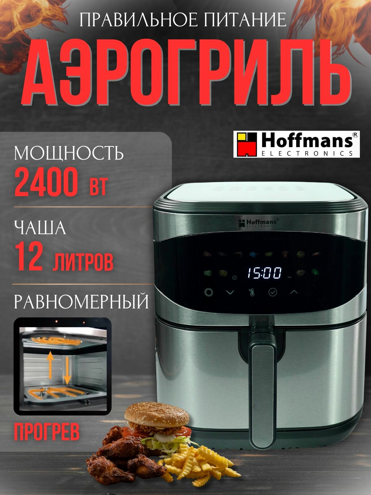 Купить Аэрогриль Hoffmans, 12 л, 2400 Вт, черный,10 программ,2 ТЭНа