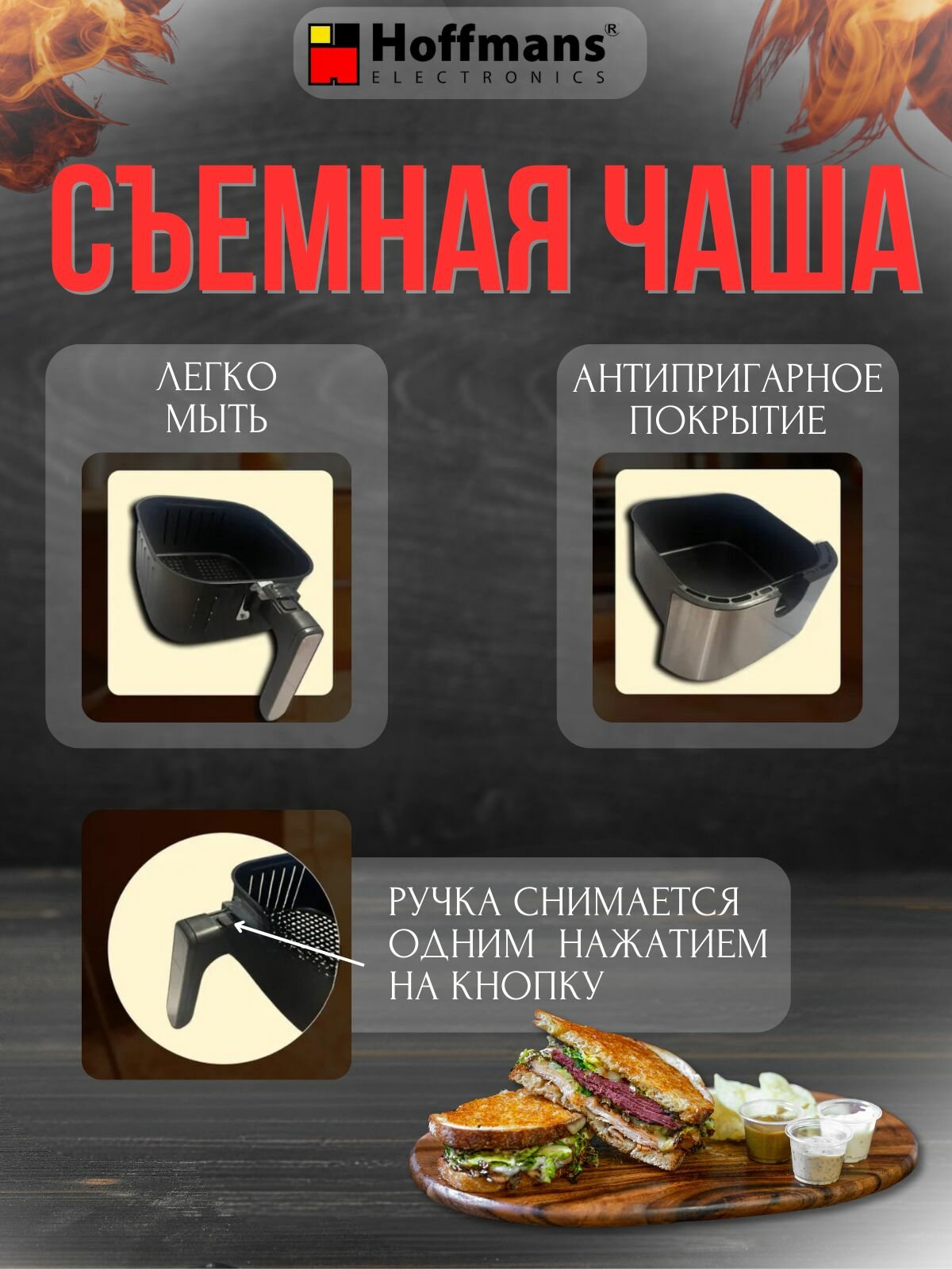 Аэрогриль Hoffmans, 12 л, 2400 Вт, черный,10 программ,2 ТЭНа интересное: