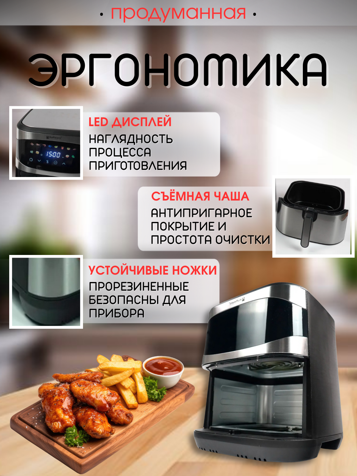 Аэрогриль Hoffmans, мощность 2400Вт, сенсорный, LED дисплей, 12 литров, черный/серый интересное: