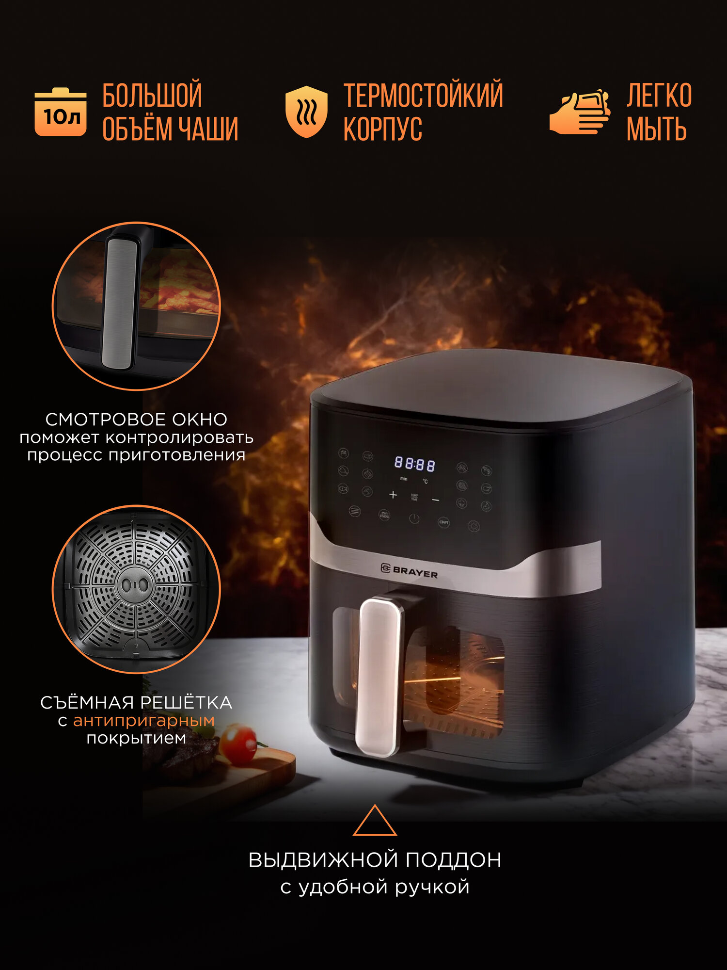 Аэрогриль BRAYER BR2040, 1800Вт, 10л, 12 программ, LCD-дисплей, сенсорное управление, до 200С, съемная решетка интересное:
