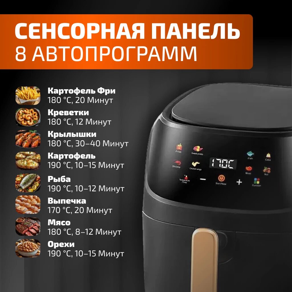 Аэрогриль электрический "Smart Visual", 8л, 1400Вт, сенсорное управление, таймер, черный