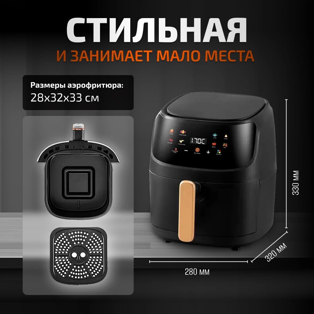 Электрический аэрогриль Smart Visual RR503 | 6 Л | Сенсорное управление | Конвекция горячего воздуха | 900 Вт | Черный интересное: