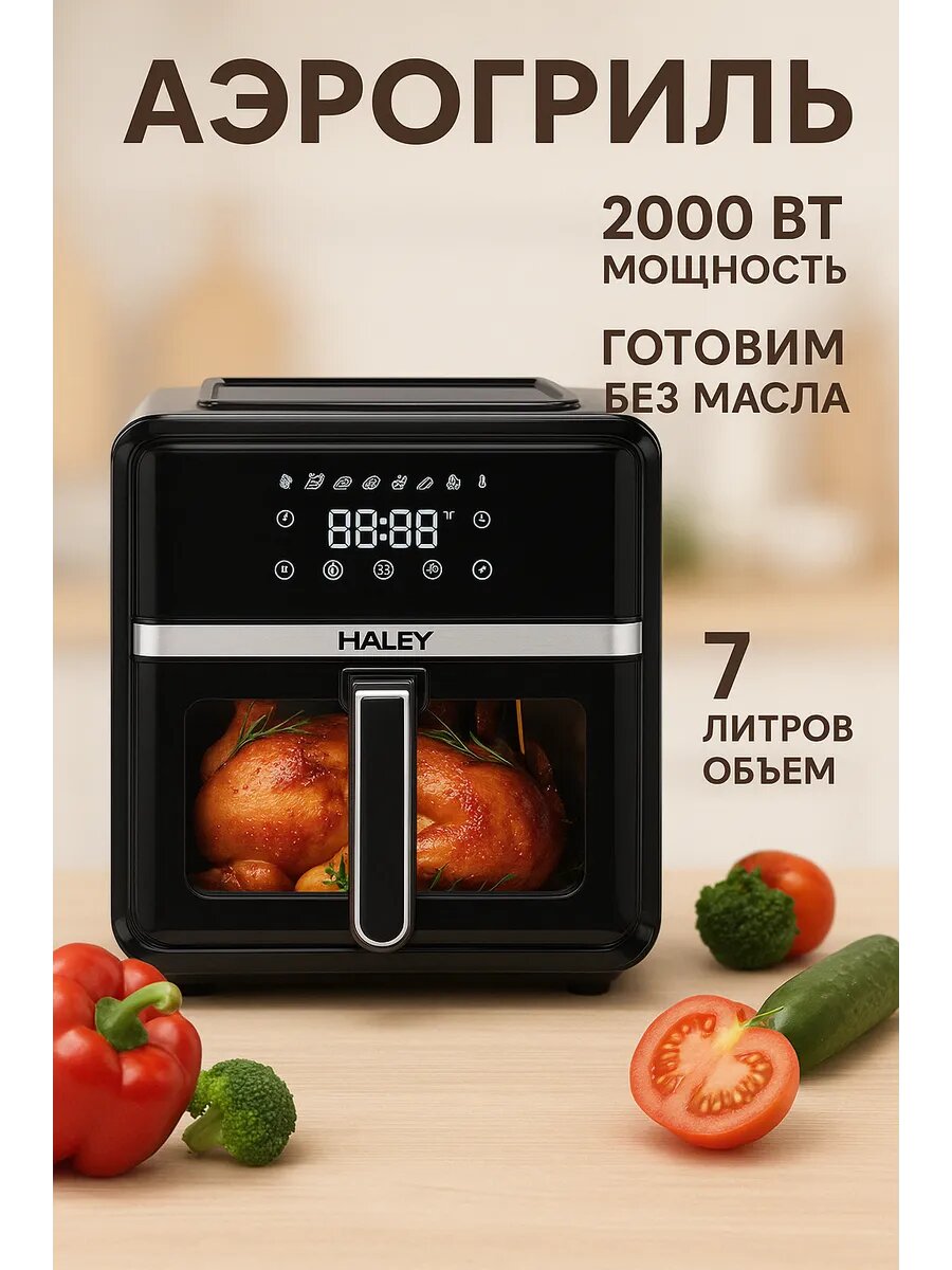 Аэрогриль Haley HY-2533, 2000Вт, 7 л, с регулировкой температуры и конвекции интересное: