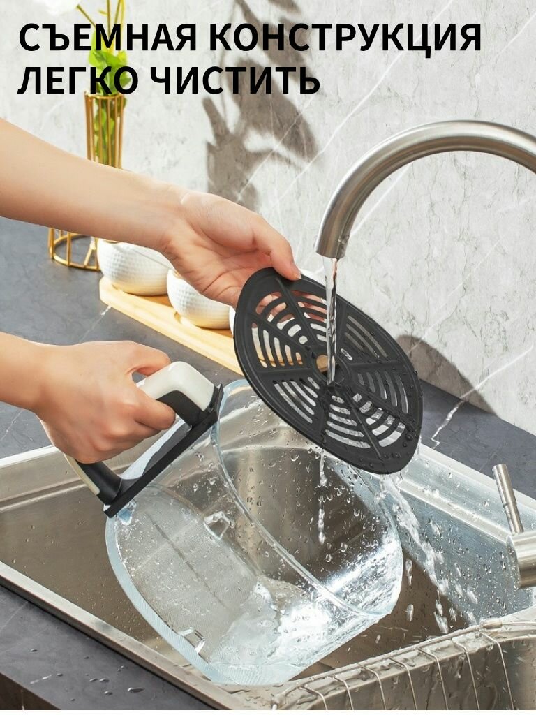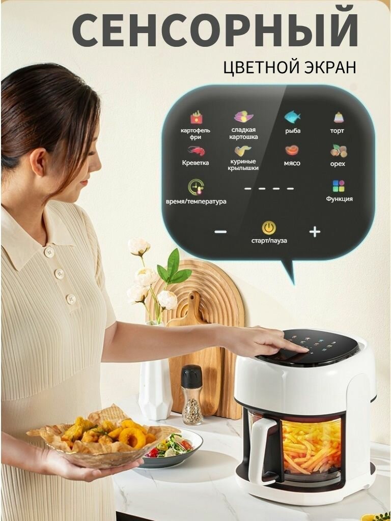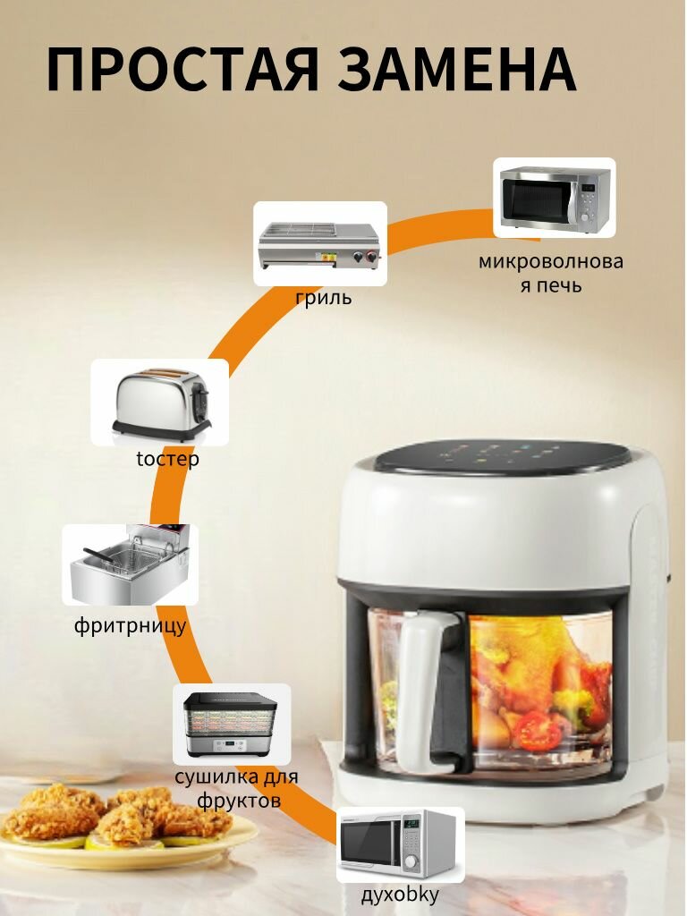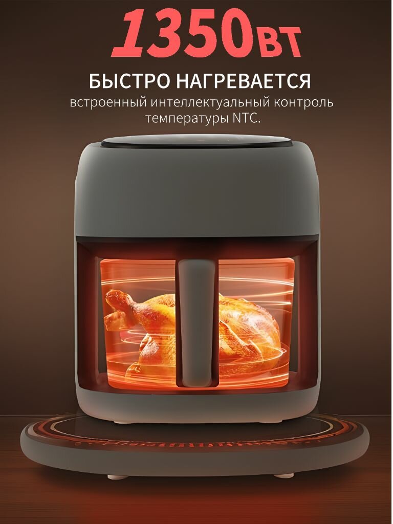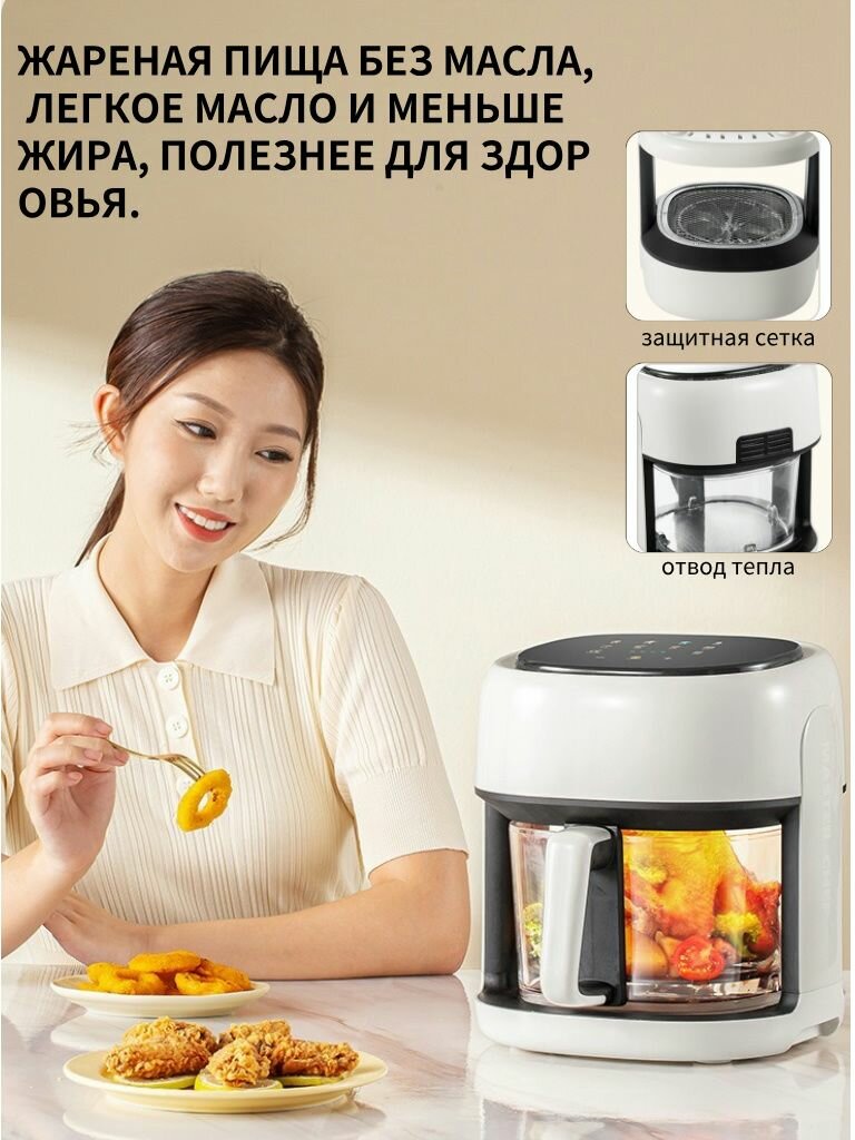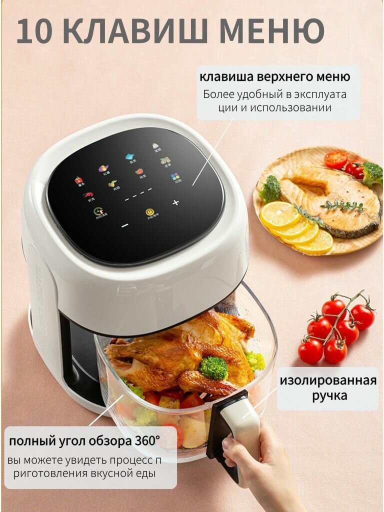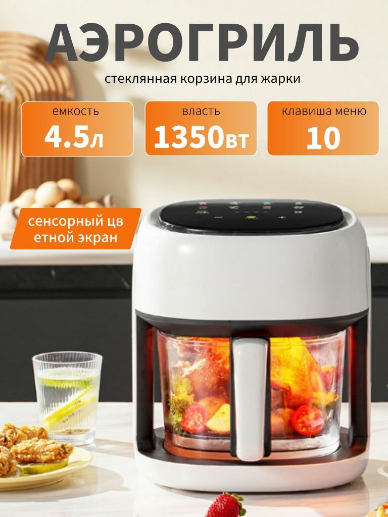 Аэрогриль 4.5л, 10 кнопок предустановленного меню, высококачественное боросиликатное стекло. интересное: