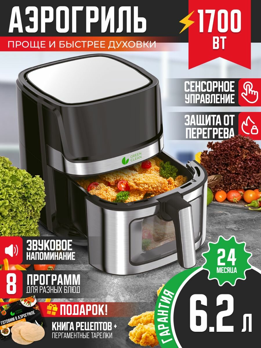 Аэрогриль электрический 6.2 л, 8 программ, книга рецептов GREEN CLEAN интересное: