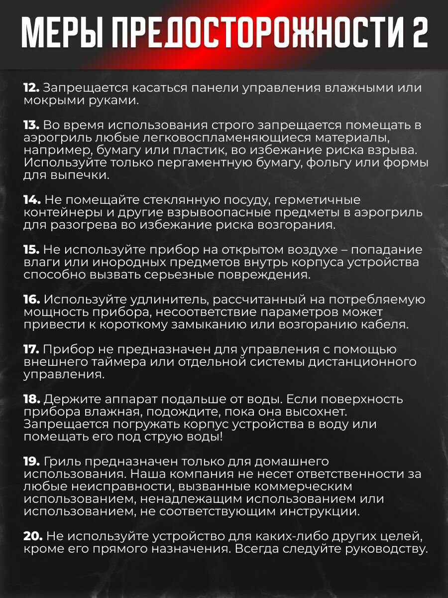 | В комплекте | антипригарная решетка, инструкция, книга рецептов, пергаментные тарелки, резиновые подушки |