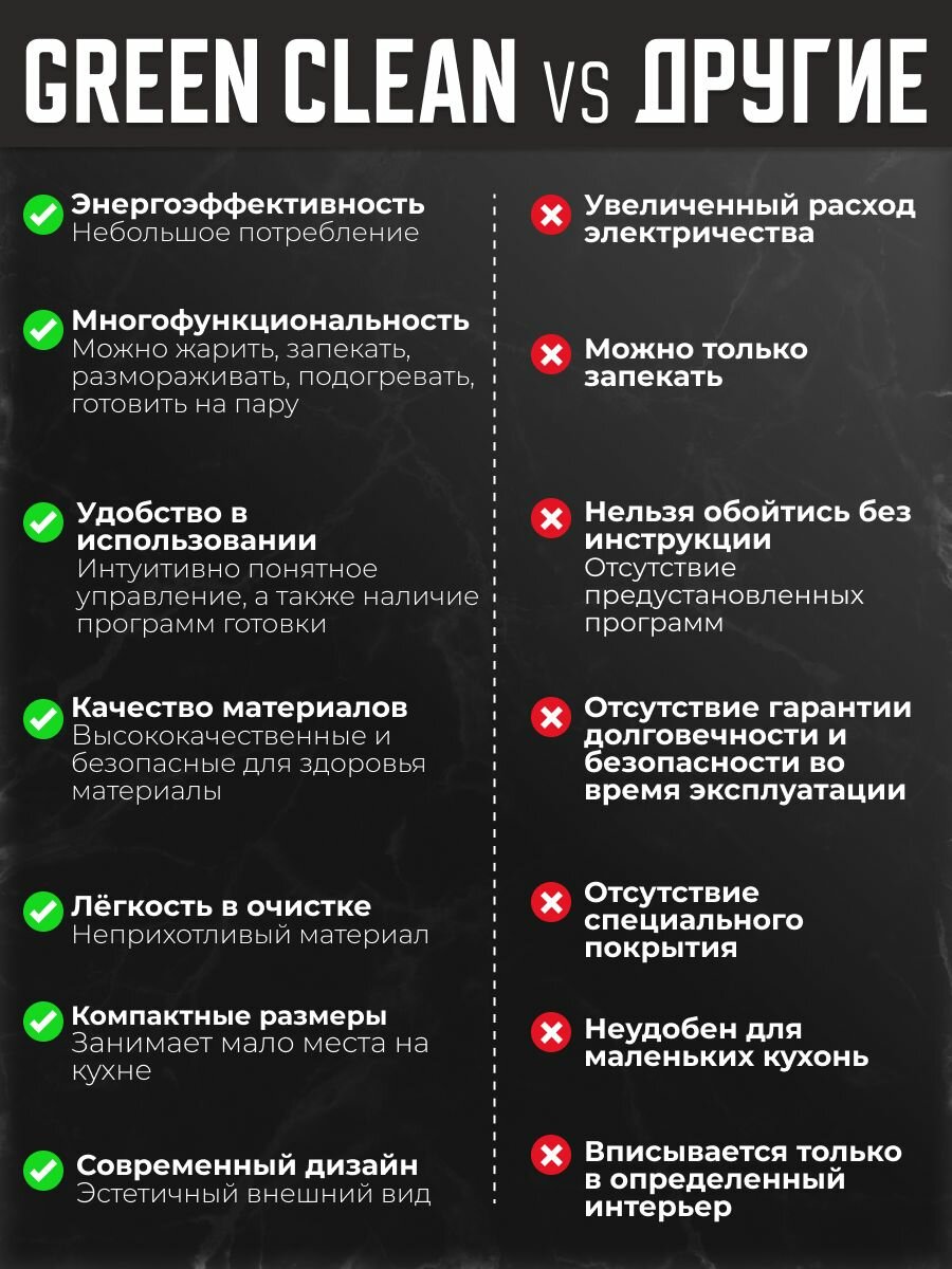 Аэрогриль электрический 6.2 л, 10 программ, книга рецептов GREEN CLEAN