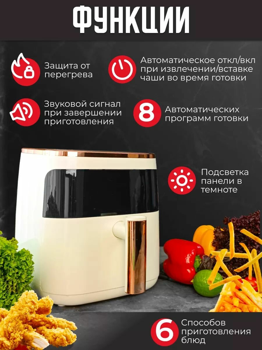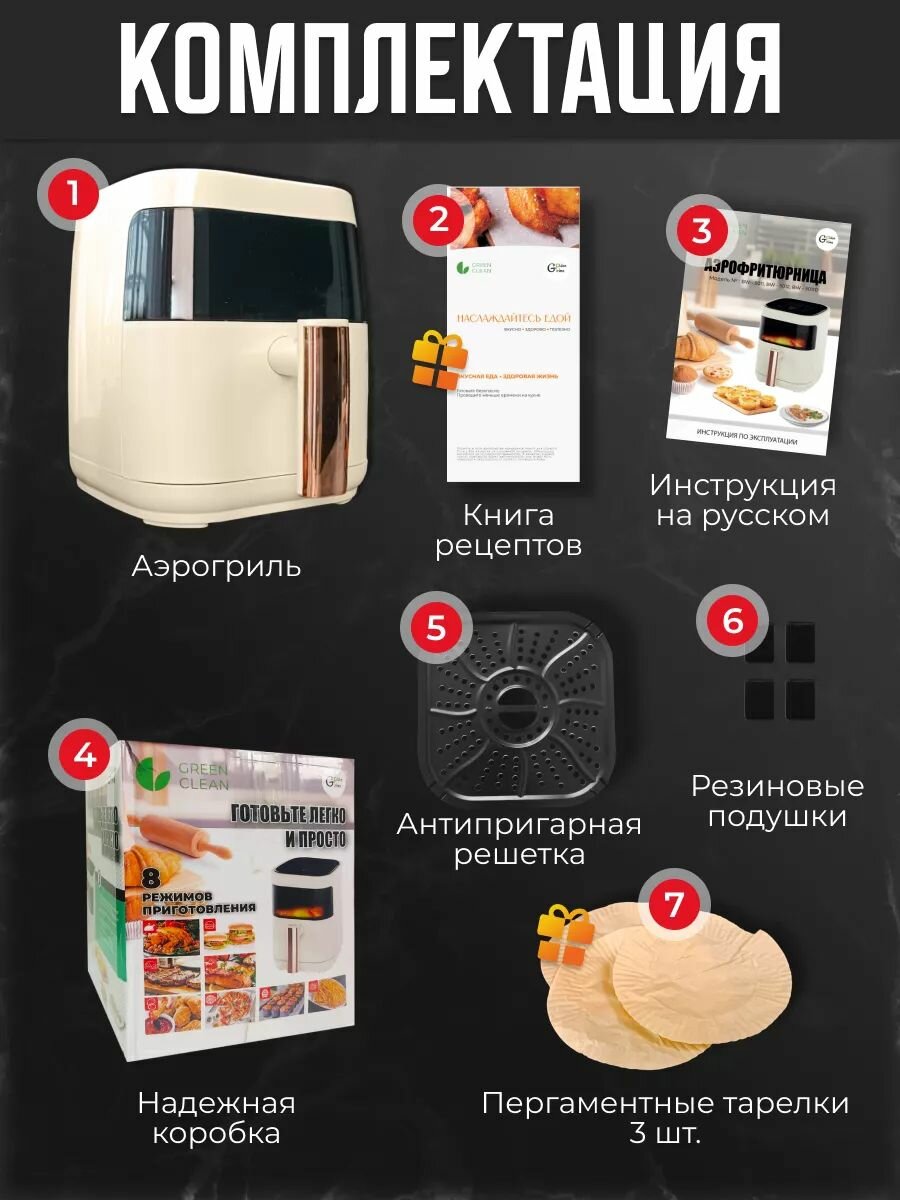 Аэрогриль электрический 6 л, 8 программ, книга рецептов GREEN CLEAN интересное: