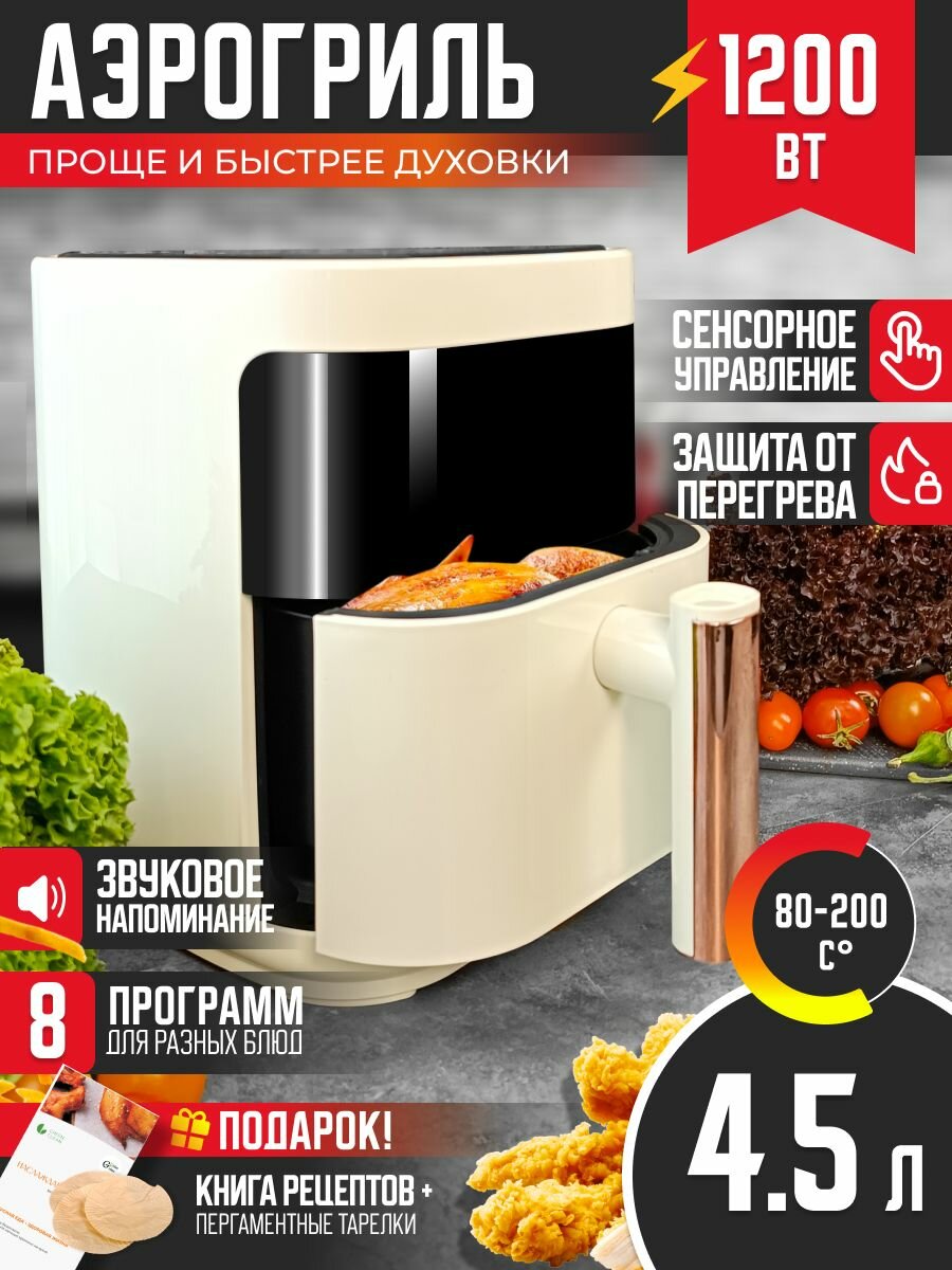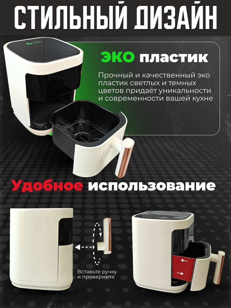 Аэрогриль электрический белый 4,5 л, 8 программ, книга рецептов GREEN CLEAN интересное: