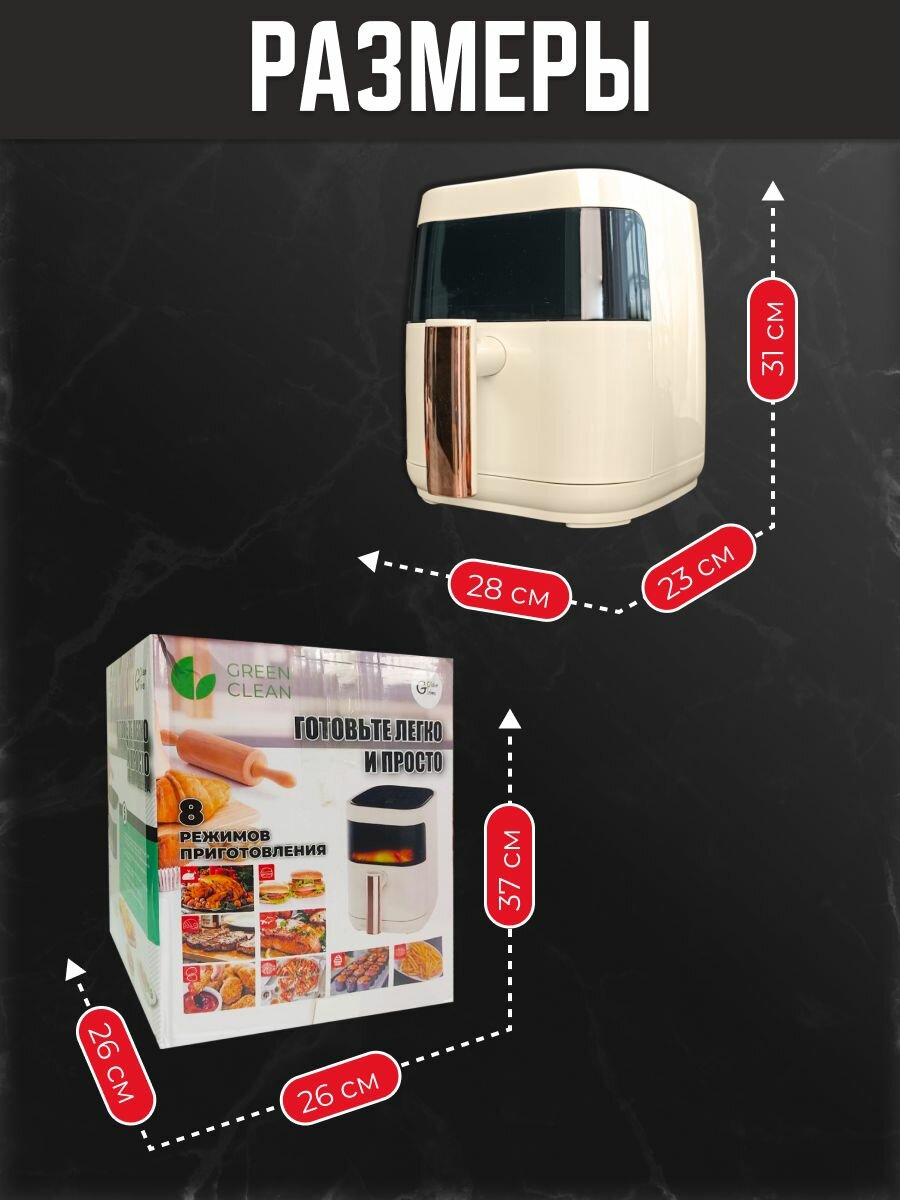 Аэрогриль электрический 6 л, 8 программ, книга рецептов GREEN CLEAN