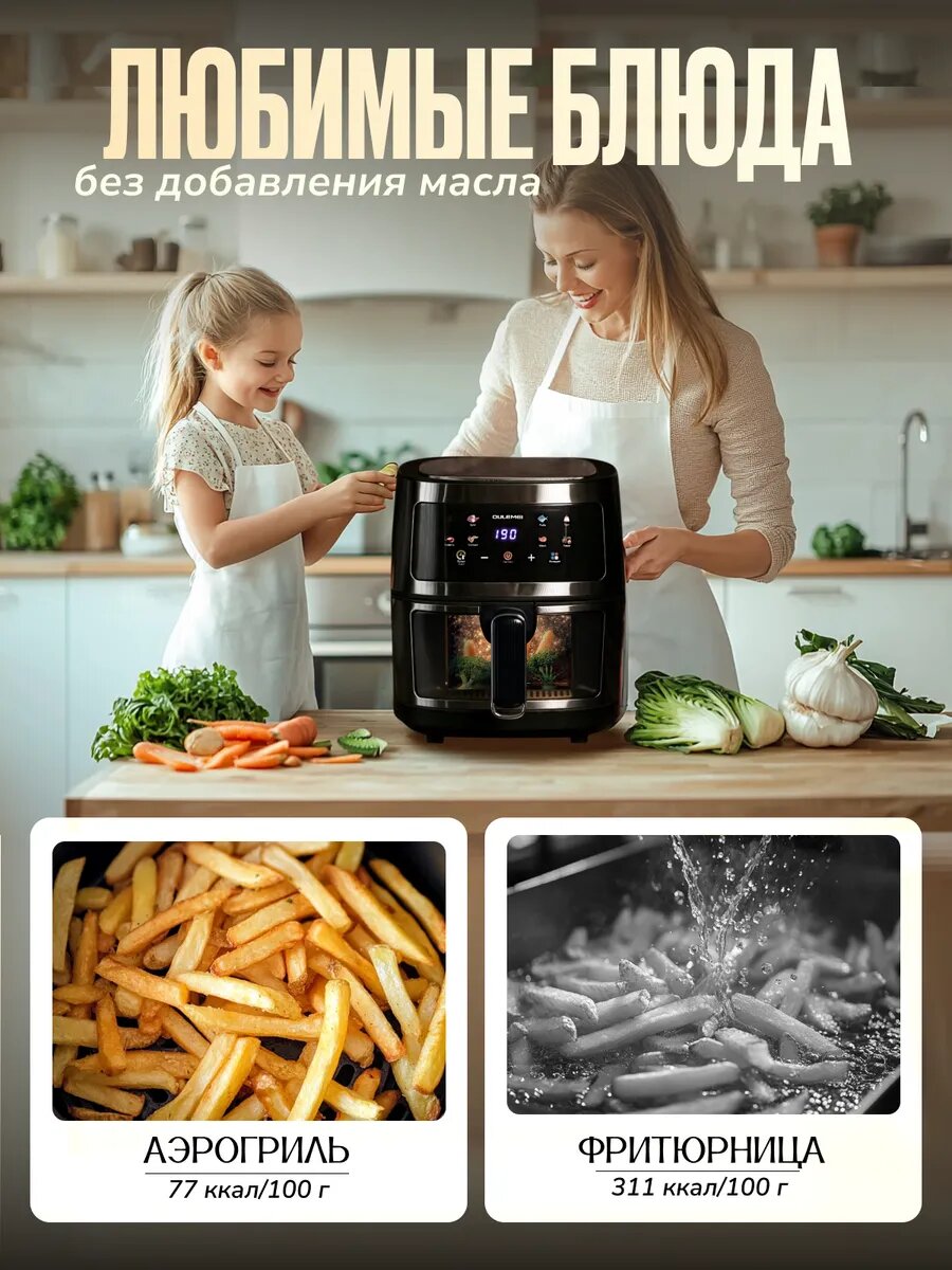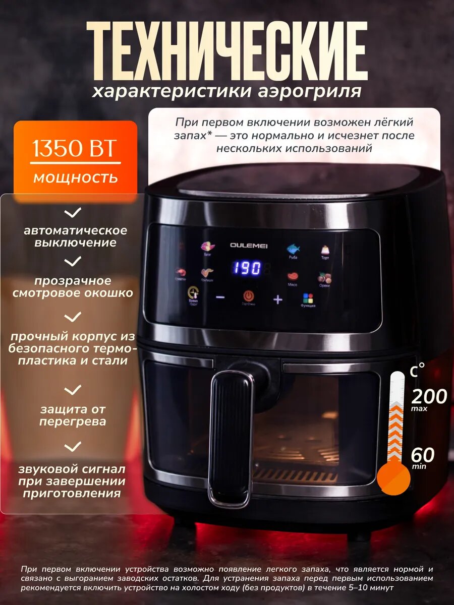 Аэрогриль черный электрический для дома 6 литров черный 1350вт интересное:
