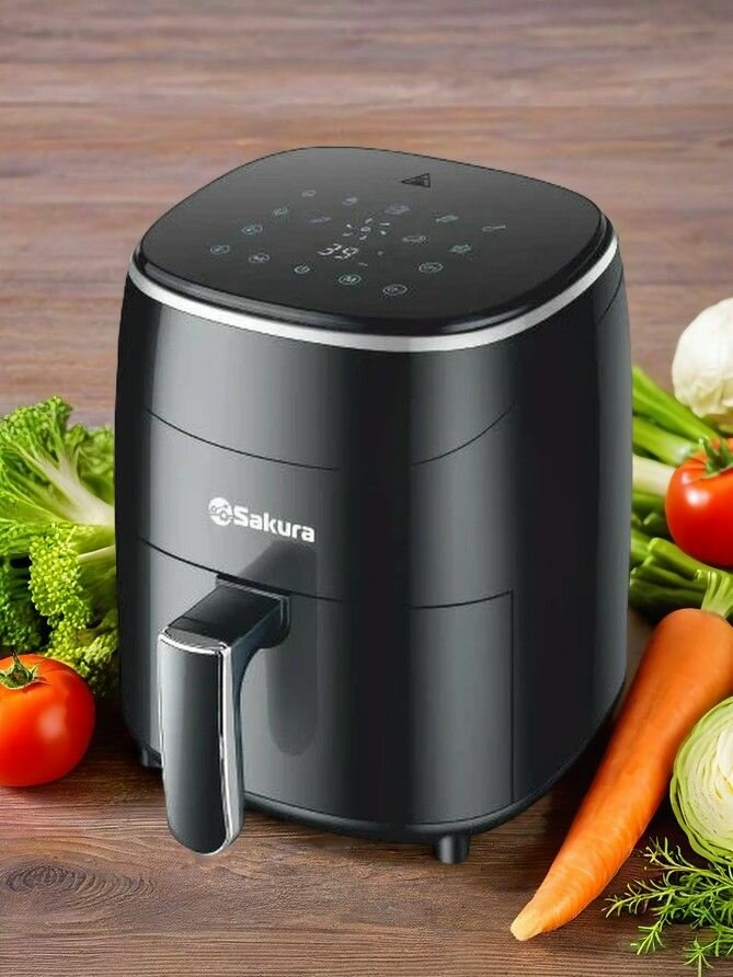 Аэрогриль электрический Sakura SA-7671, 9 автоматических программ, 1200 Вт, чаша с антипригарным покрытием на 3,5 литра, 60-минутный таймер (OL) интересное: