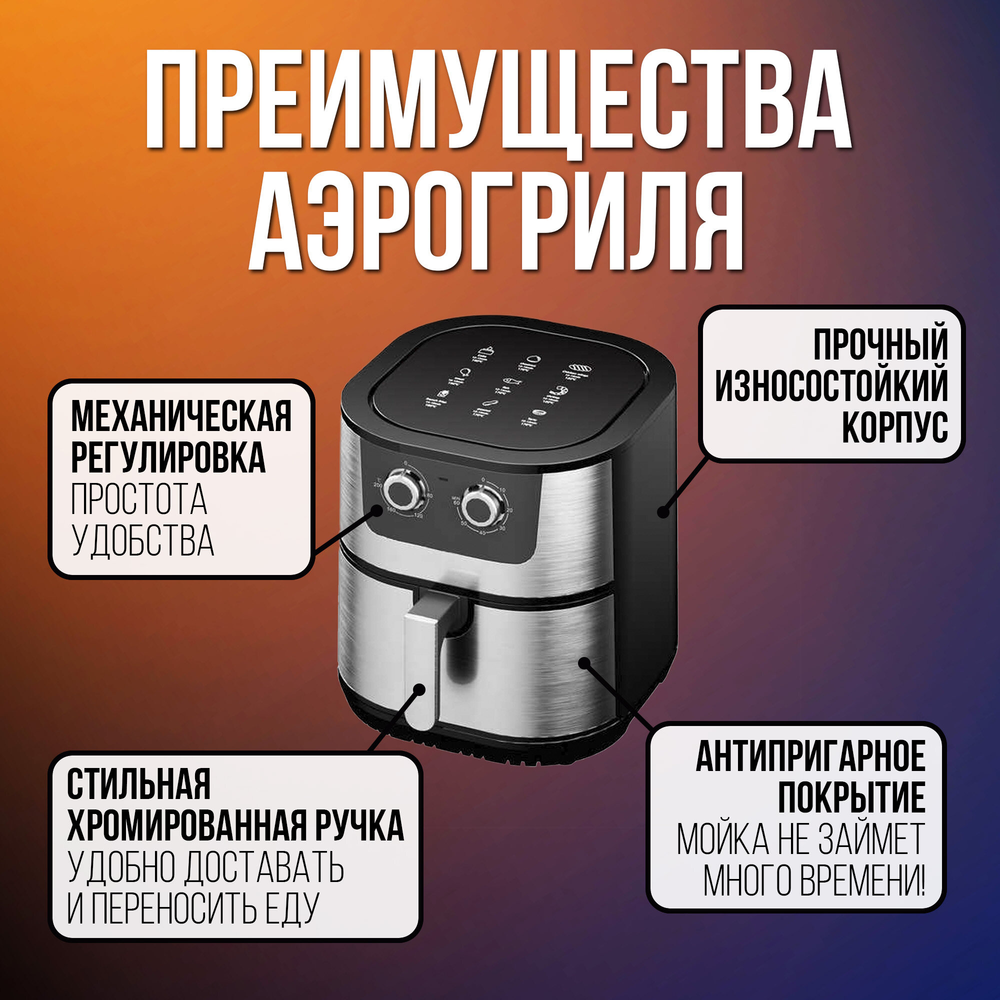 Аэрогриль Smart Visual 15 л, сенсорное управление, 2800 Вт, защита от перегрева, антипригарное покрытие, серебристый интересное: