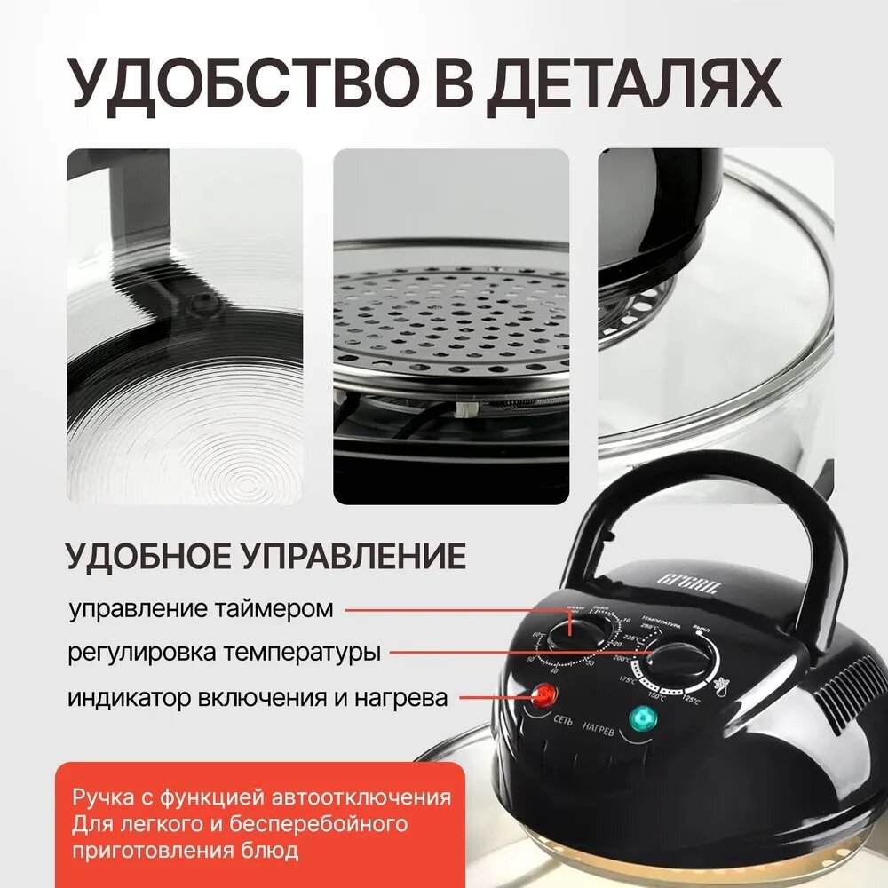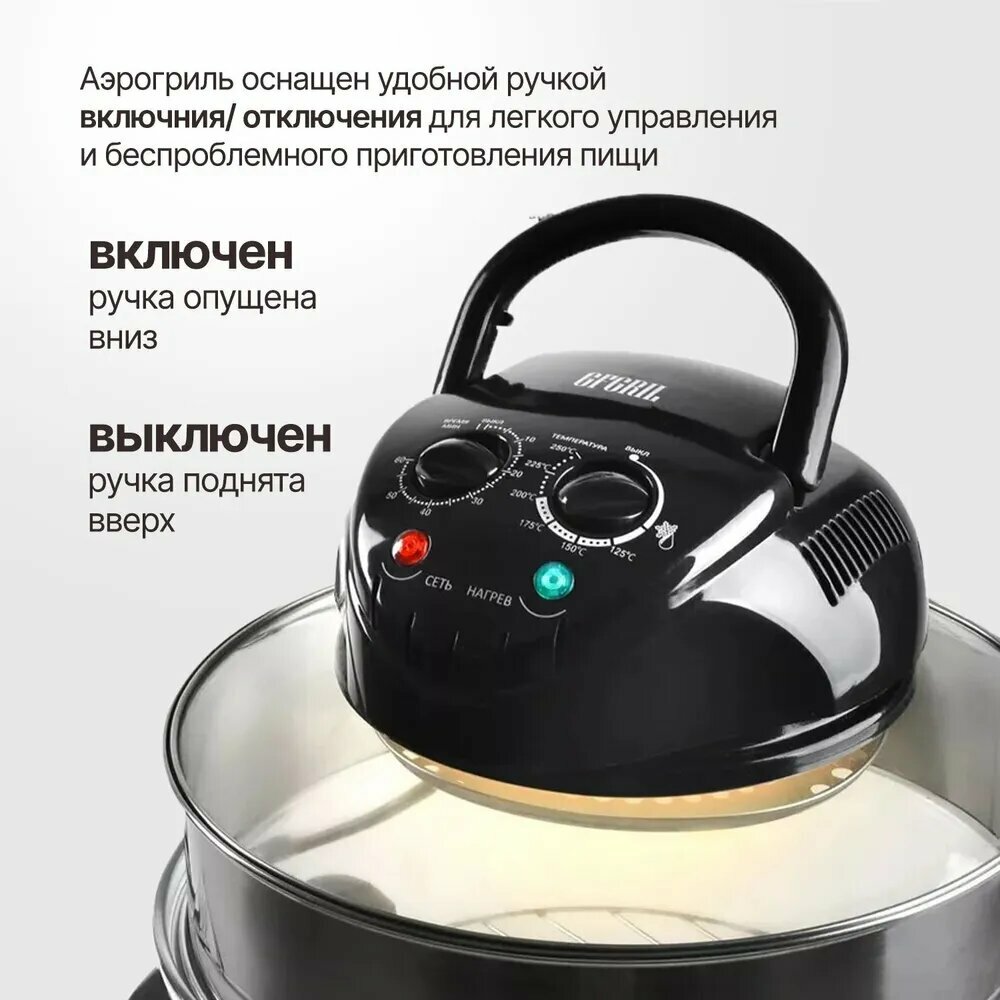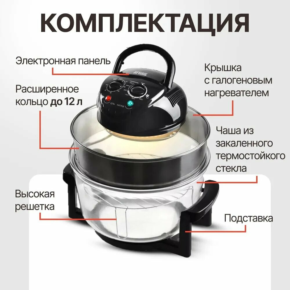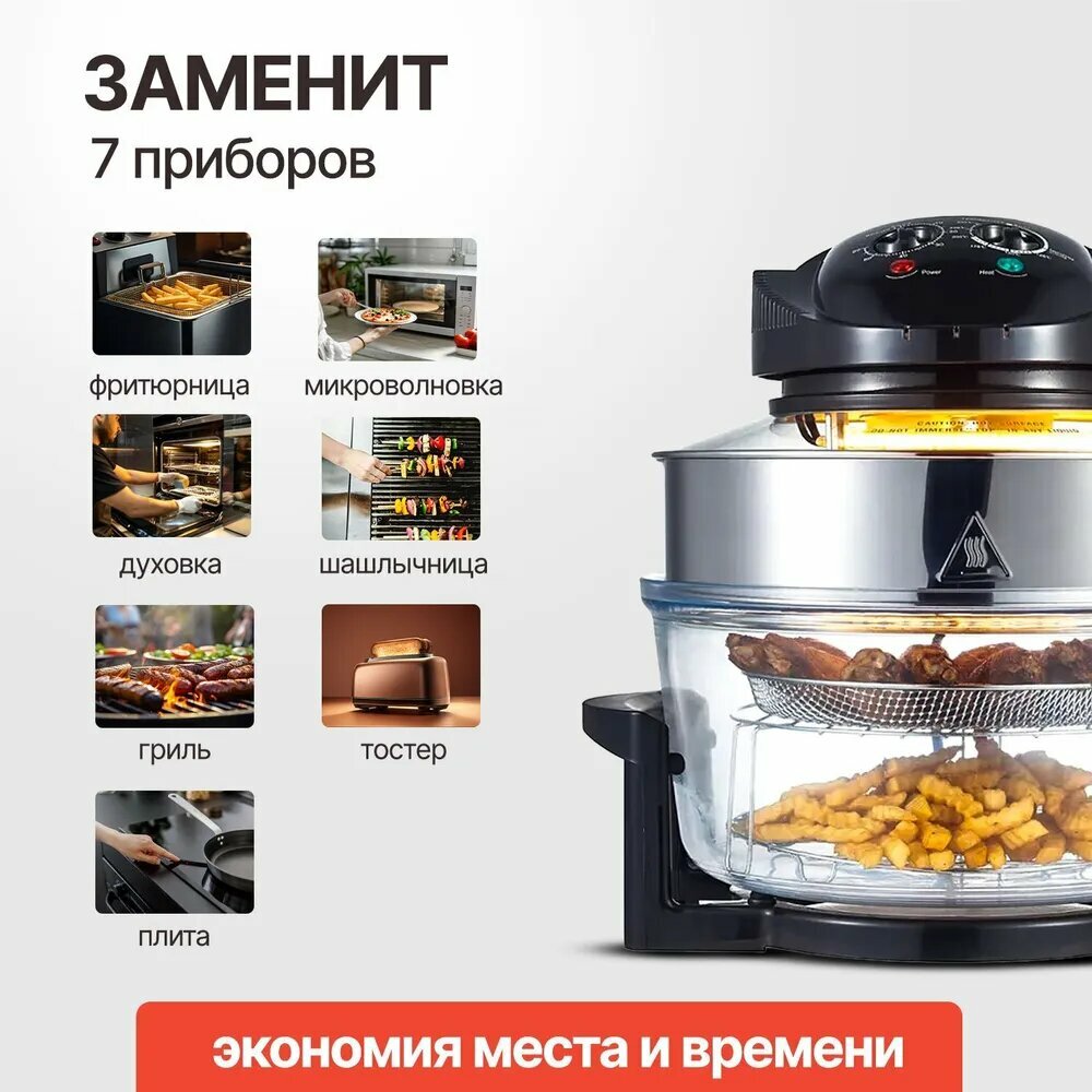 Аэрогриль, мощность 3500Вт, механическое управление, 12л, черный/прозрачный интересное: