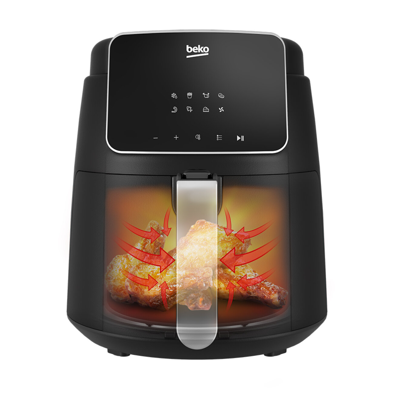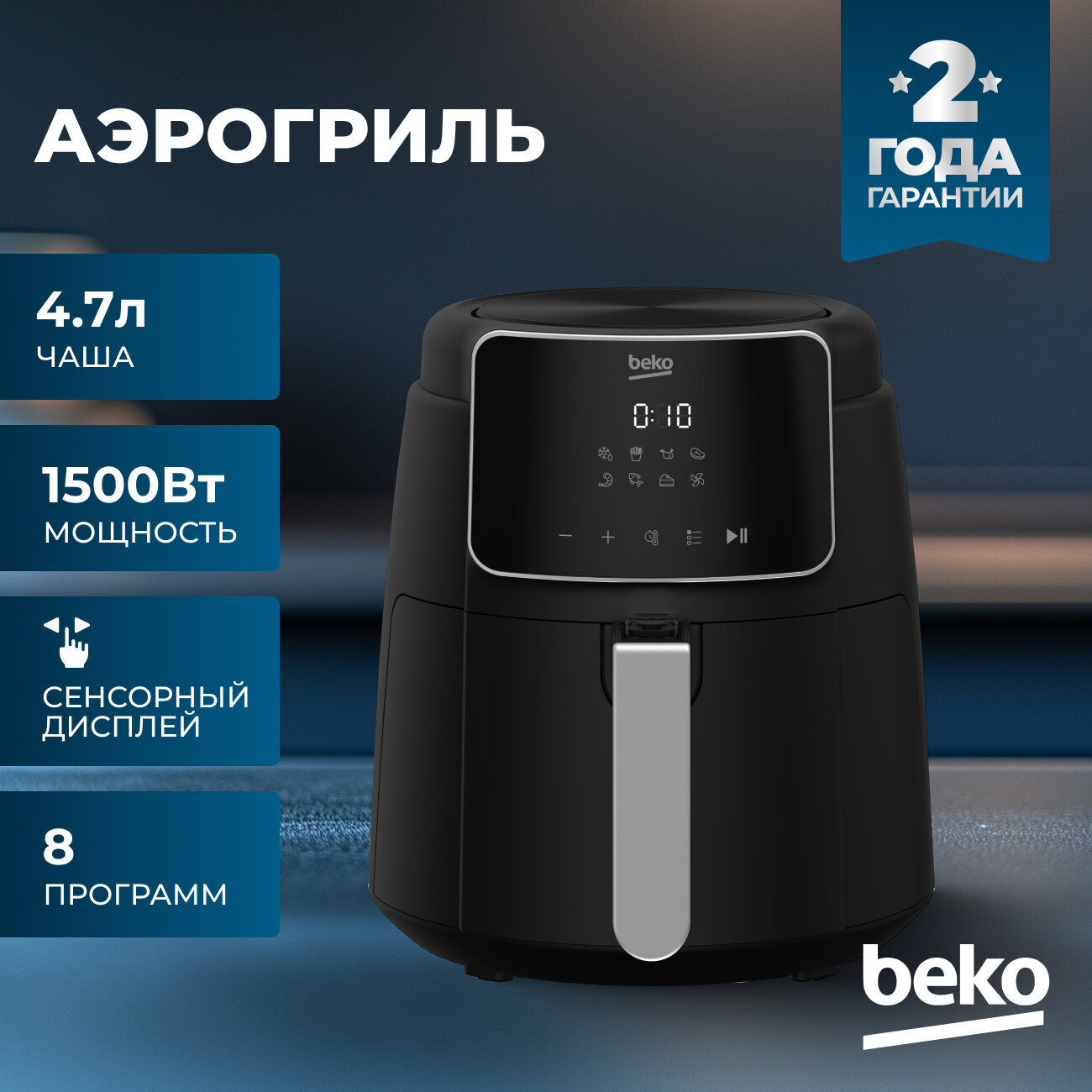 Аэрогриль BEKO FRL 2244 B, 4.7 л, 1500 Вт, 8 программ, сенсорное управление, готовка без масла, автоочистка интересное: