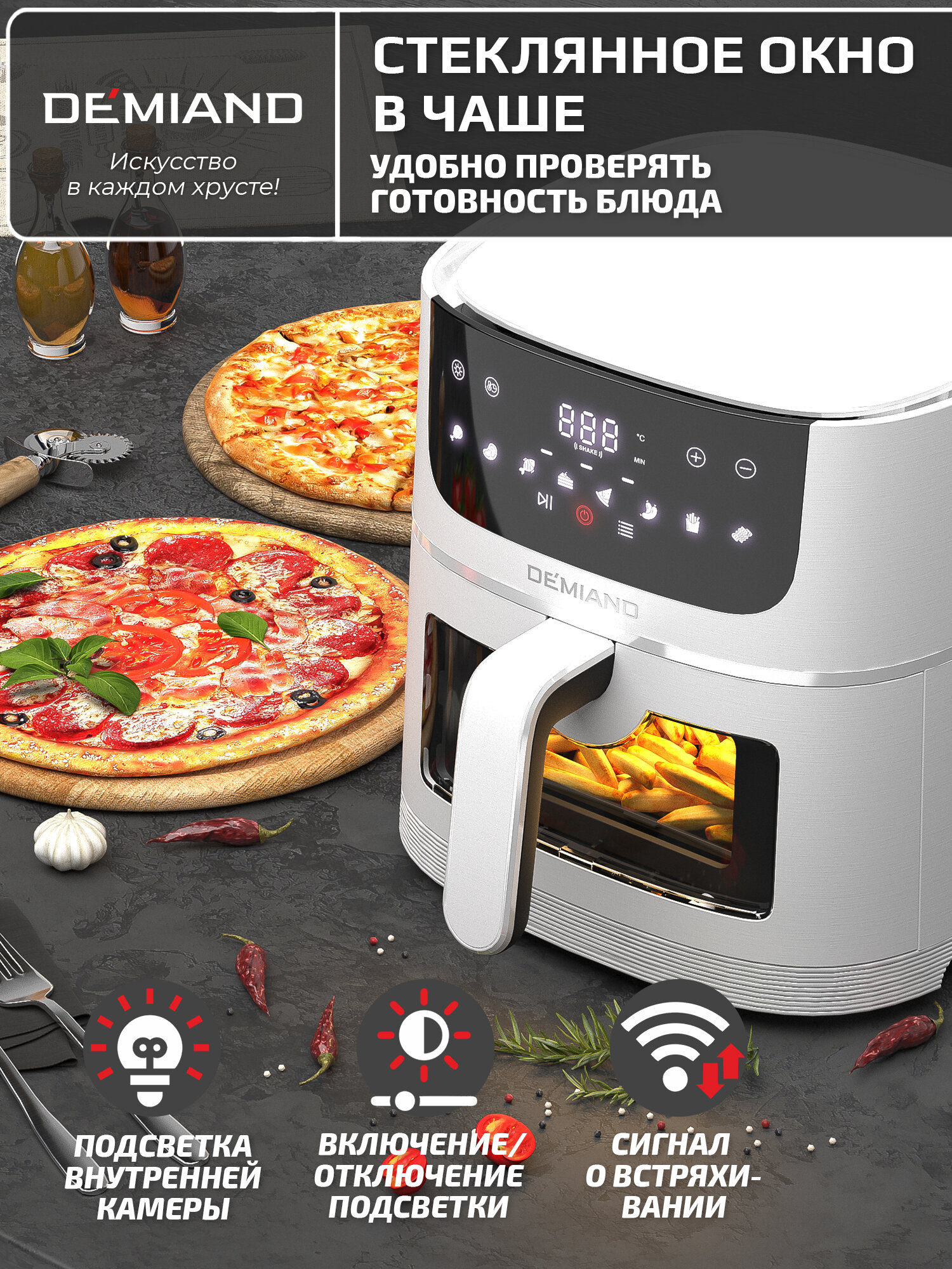 Инновационный аэрогриль DEMIAND SANDERS с технологией приготовления на Пару, чаша на 6 литров, разморозка, визуальное окно, сенсорная панель, стальной корпус, 1950W, DK-2200, белый
