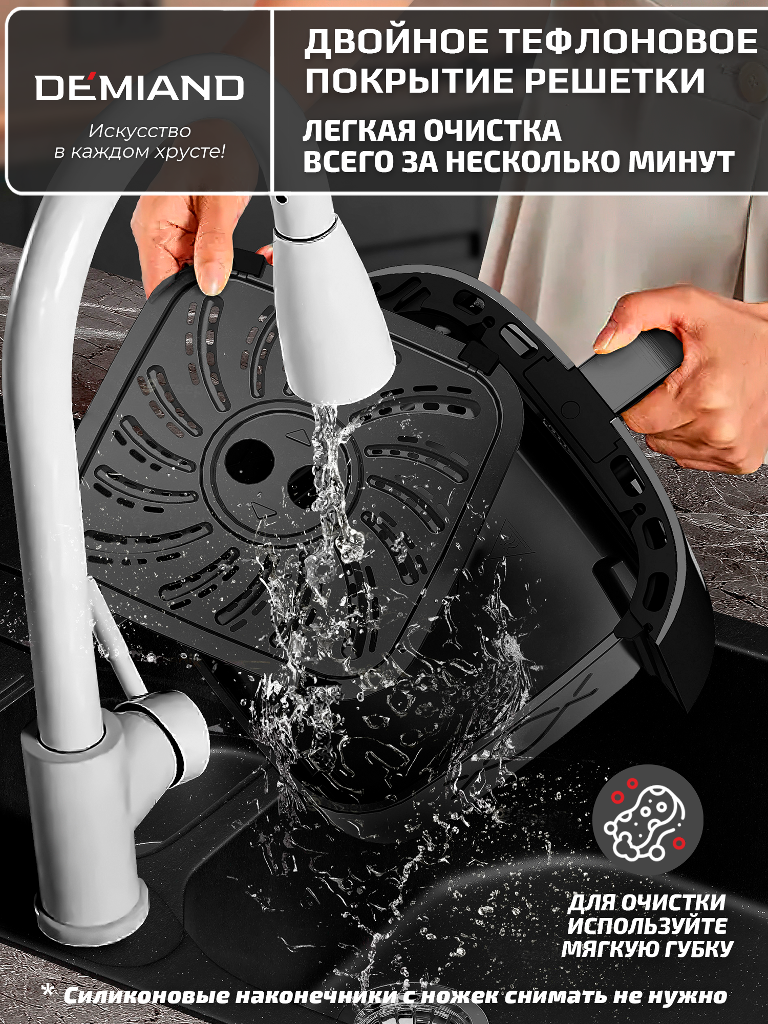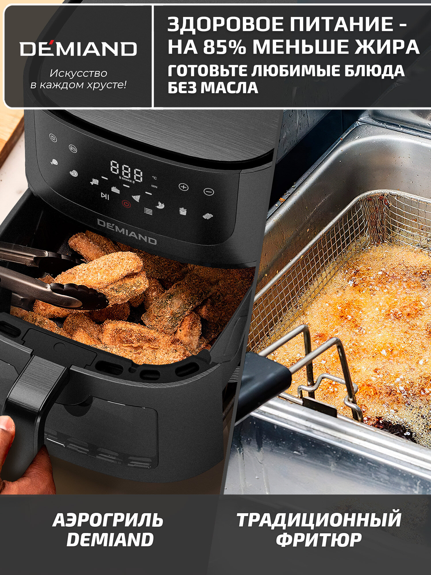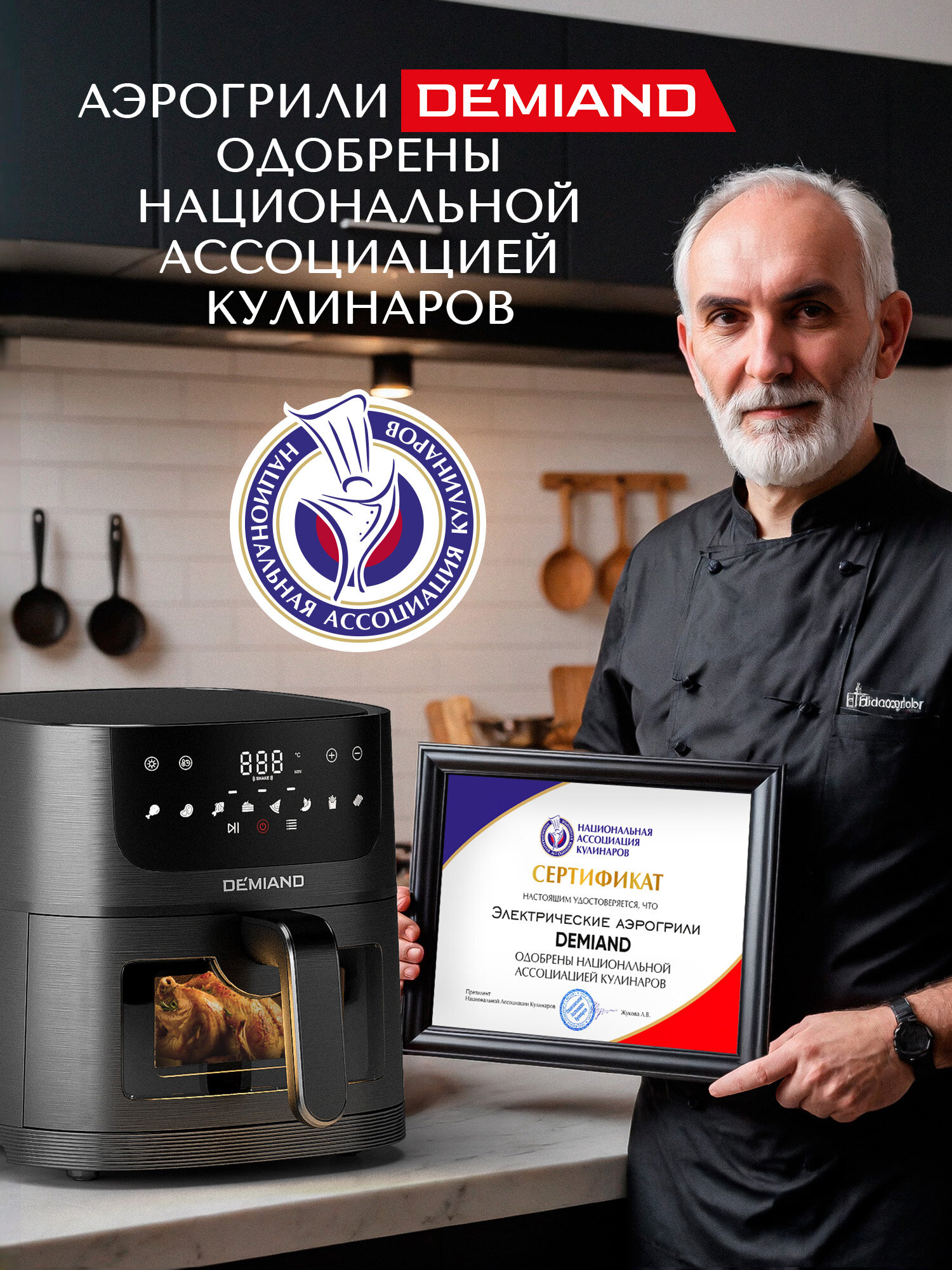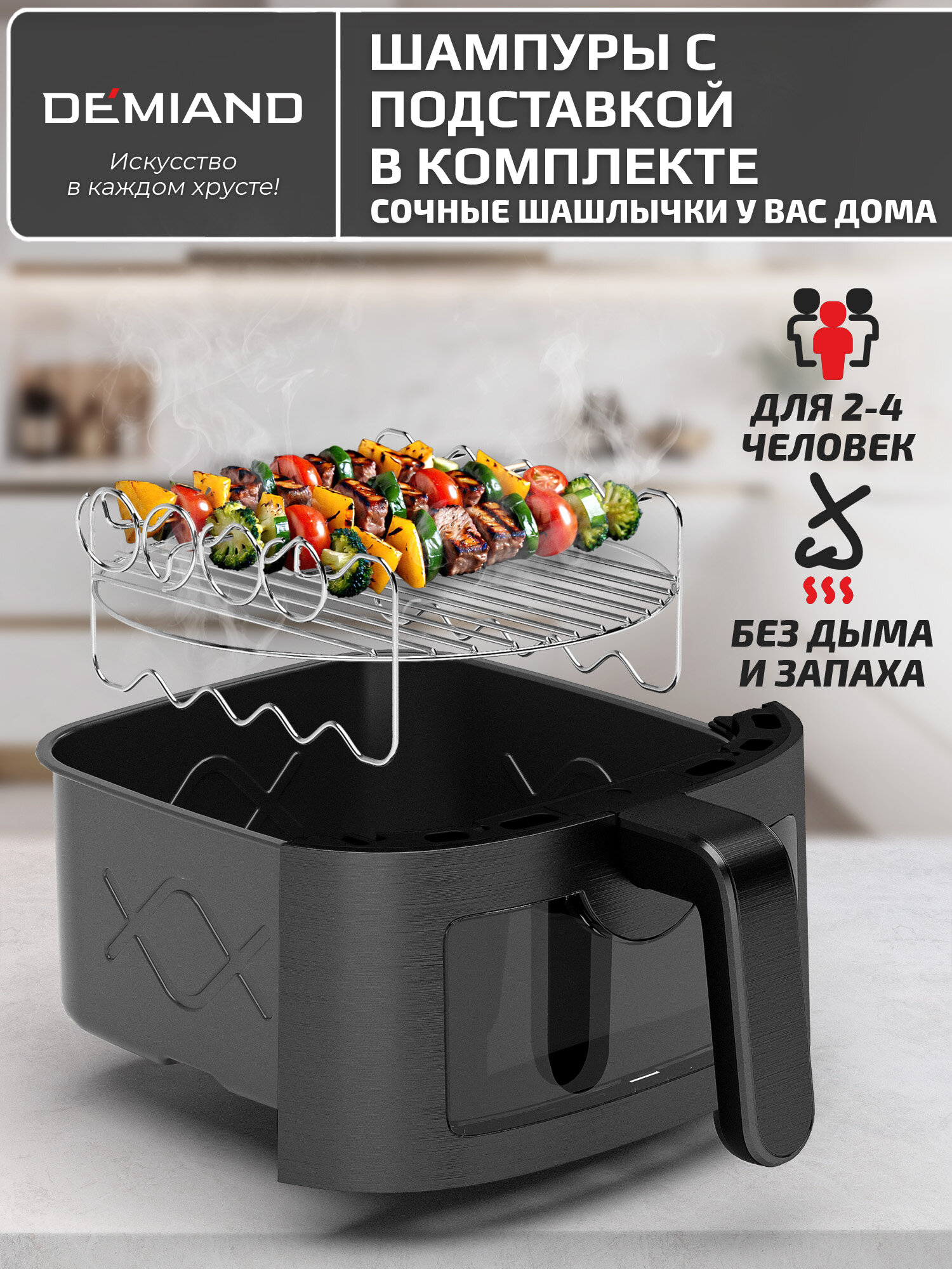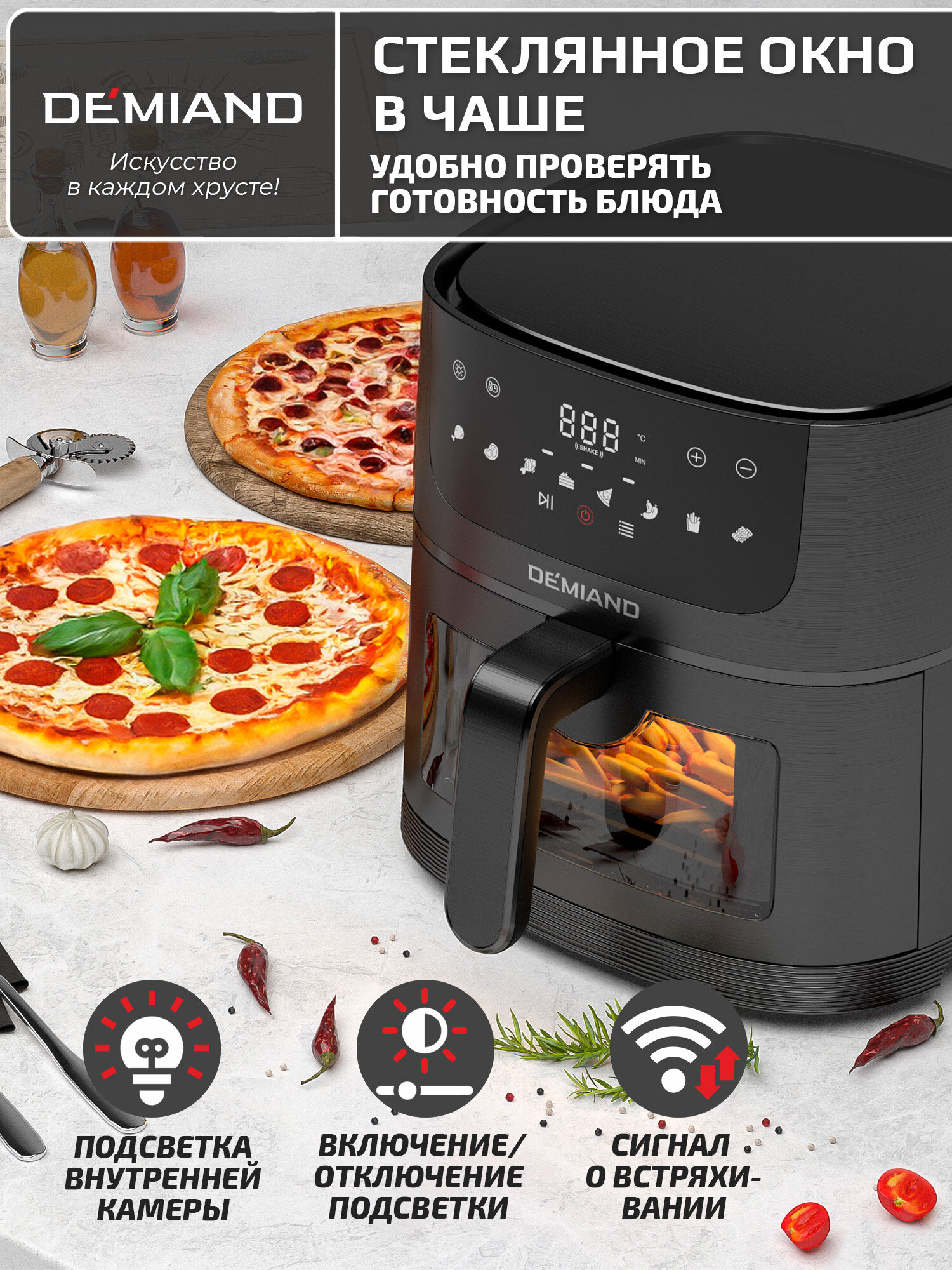 Инновационный аэрогриль DEMIAND SANDERS с технологией приготовления на Пару, чаша на 6 литров, разморозка, визуальное окно, сенсорная панель, стальной корпус, 1950W, DK-2200, черный