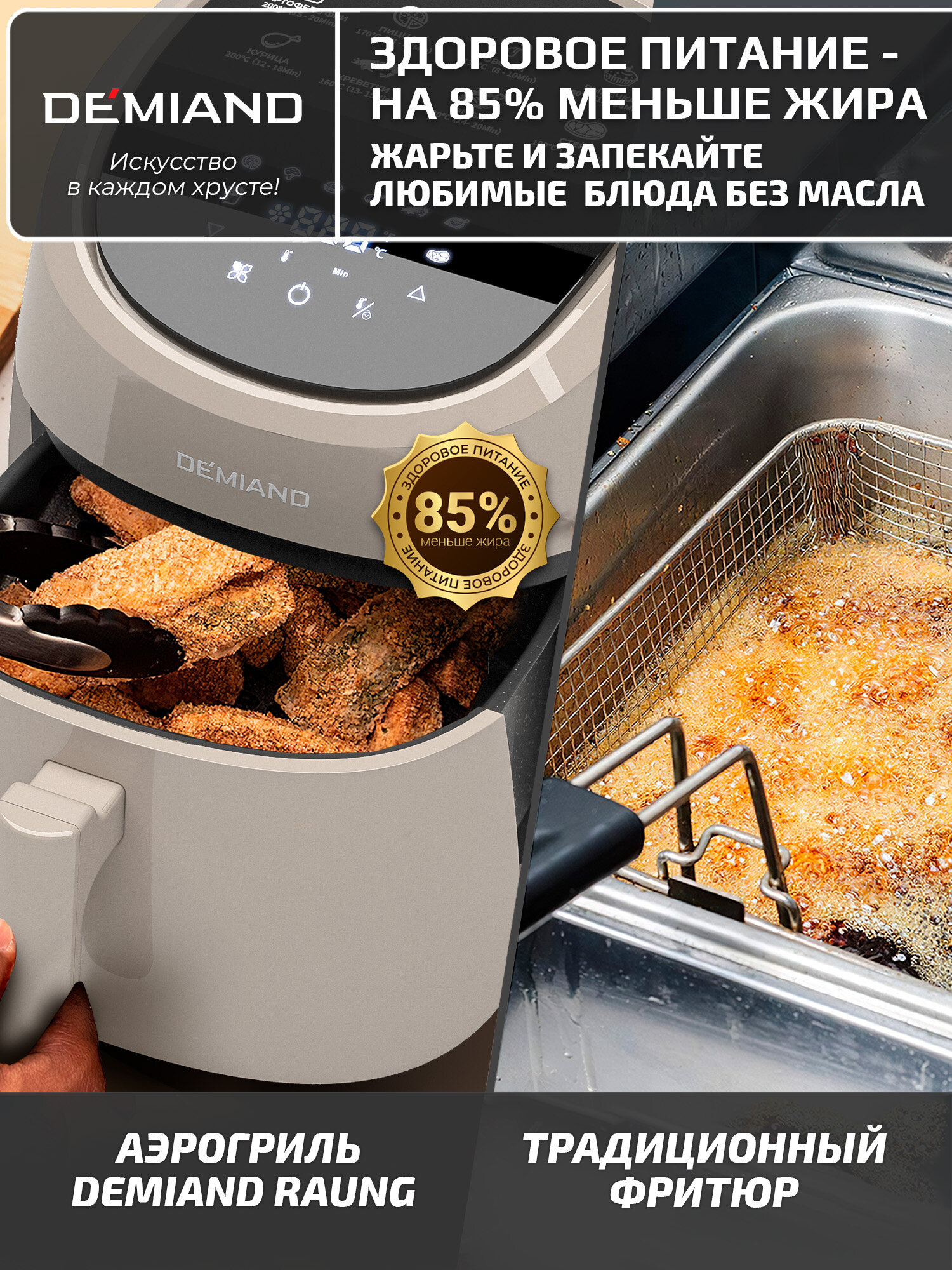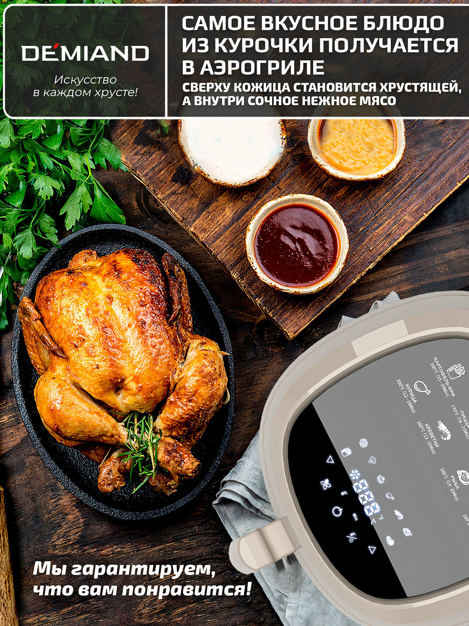СохранитьАэрогриль DEMIAND RAUNG 5 в 1 8 автоматических программ, книга рецептов, бежевый, объем 4,5 литра,1400Вт интересное: