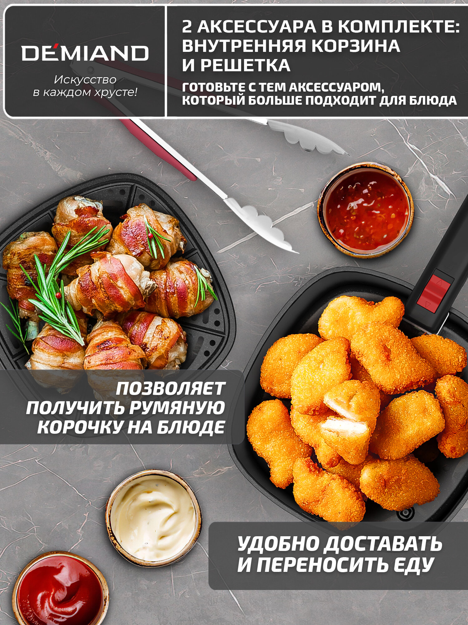 Инновационный аэрогриль DEMIAND SANDERS с технологией приготовления на Пару, чаша на 6 литров, разморозка, визуальное окно, сенсорная панель, стальной корпус, 1950W, DK-2200, черный