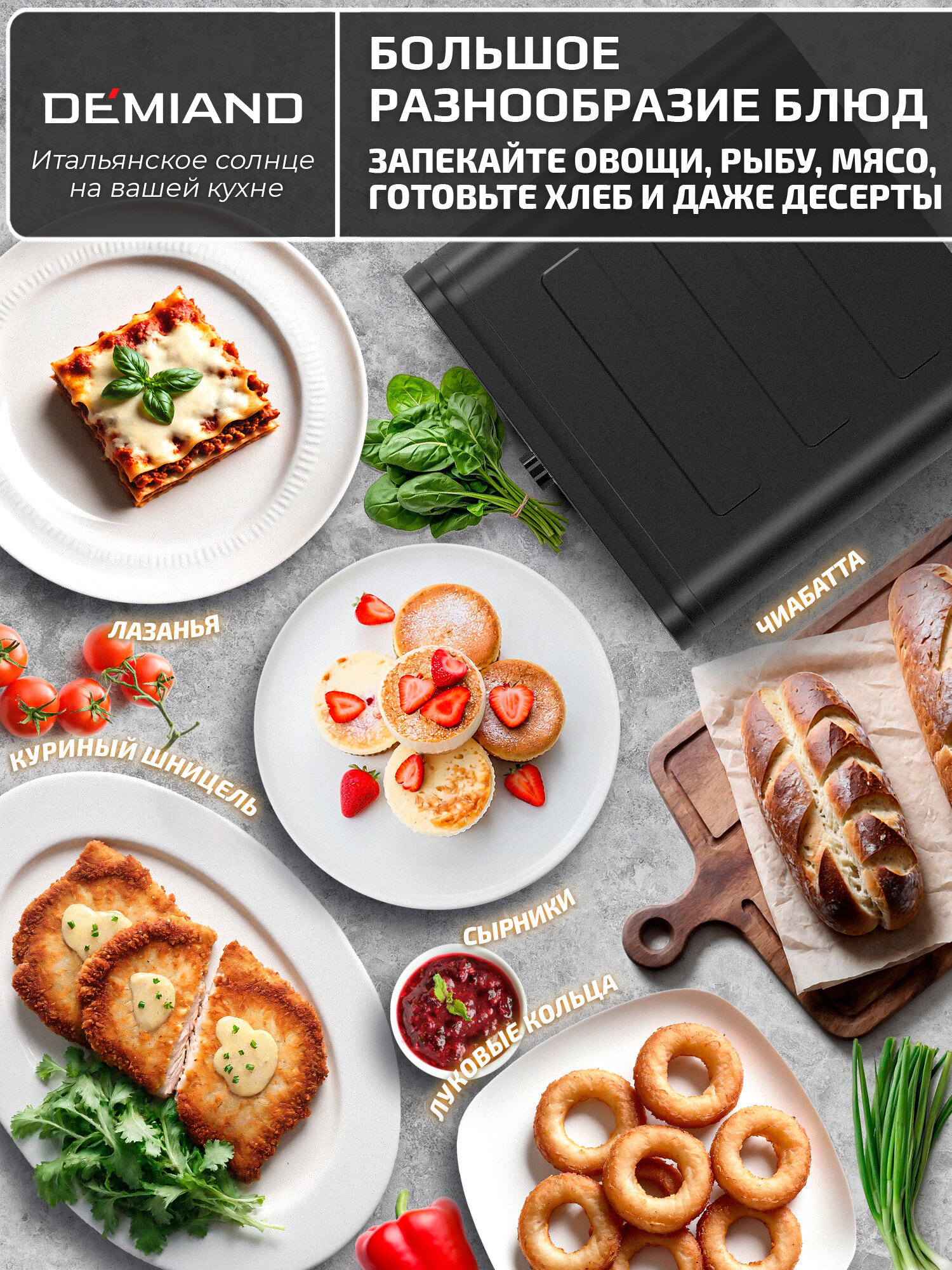 Комбинированный Аэрогриль Трансформер DEMIAND COMBO с уникальным механизмом FLIP-UP, черный