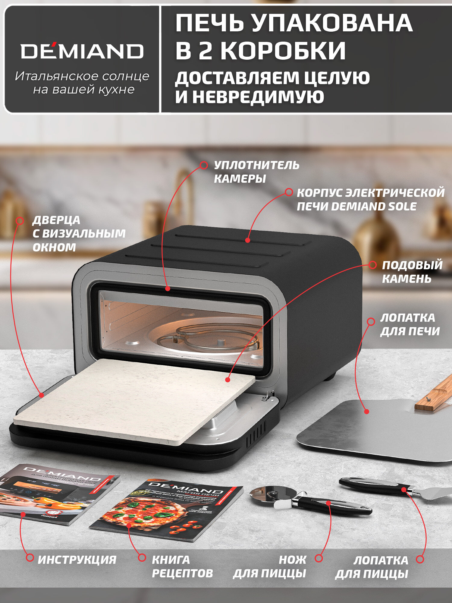 СохранитьЭлектрическая Печь SOLE DEMIAND с подовым камнем, 2 ТЭНа, мощность 1700 Вт, черная интересное: